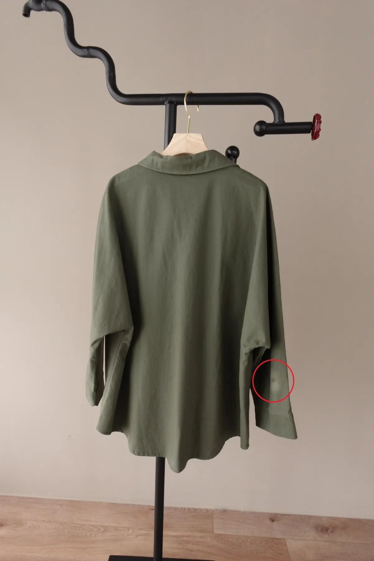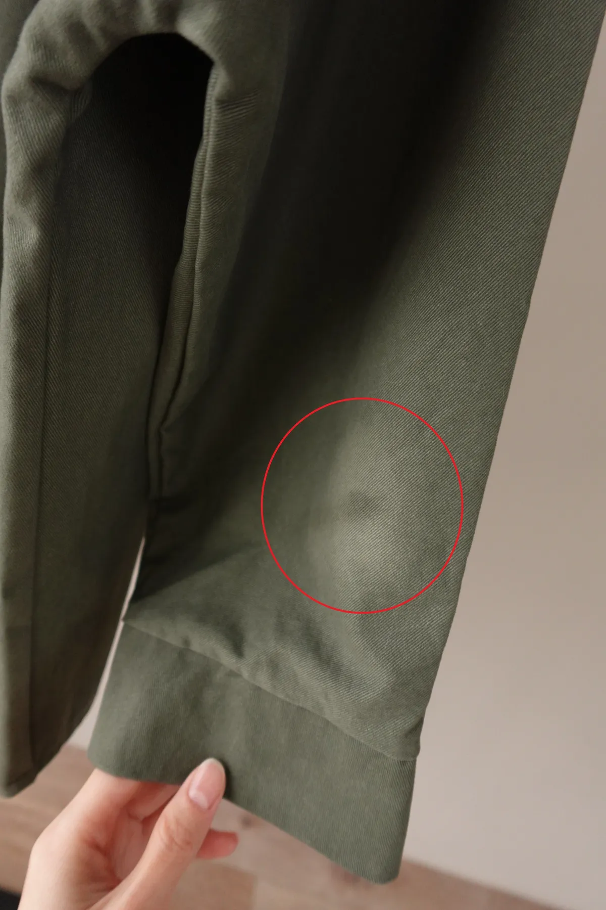 (瑕疵部位:背面右袖管有一處約4cm退色重疊5公分髒汙,不影響版型)