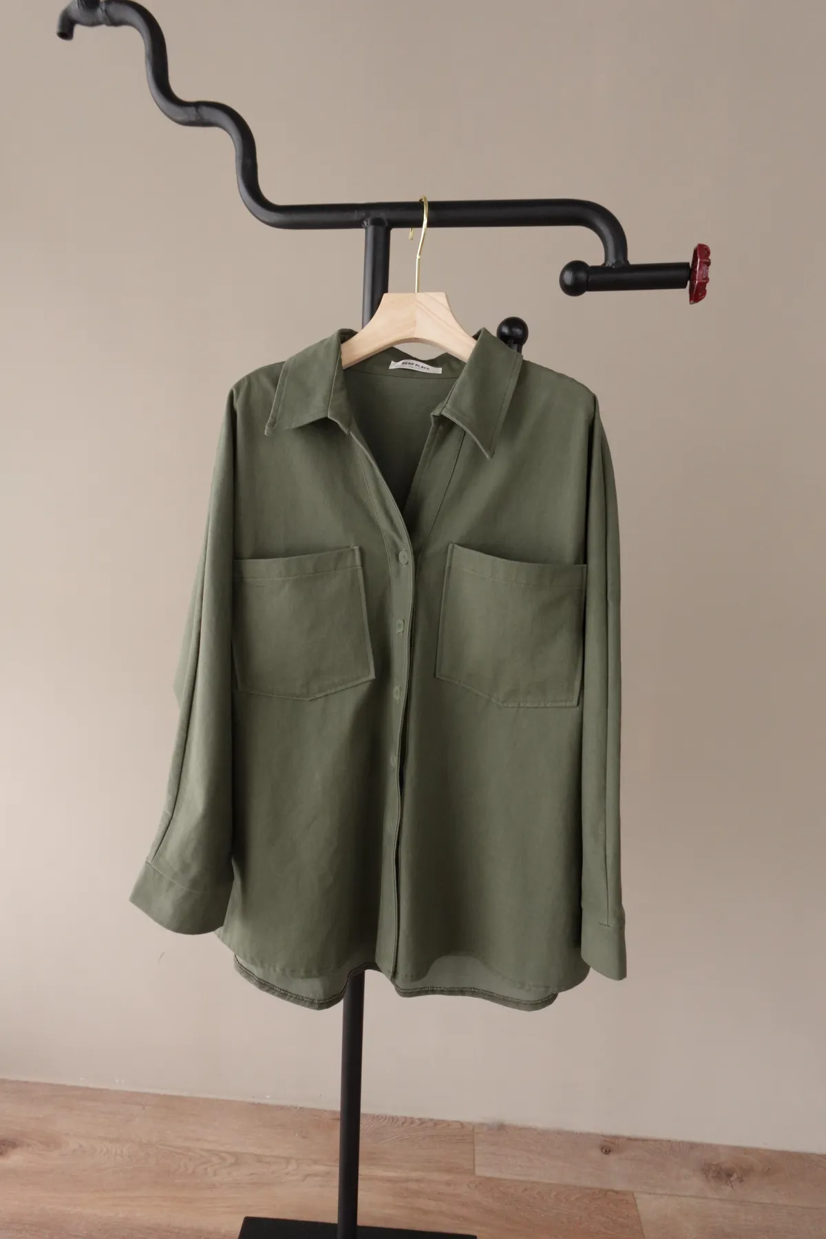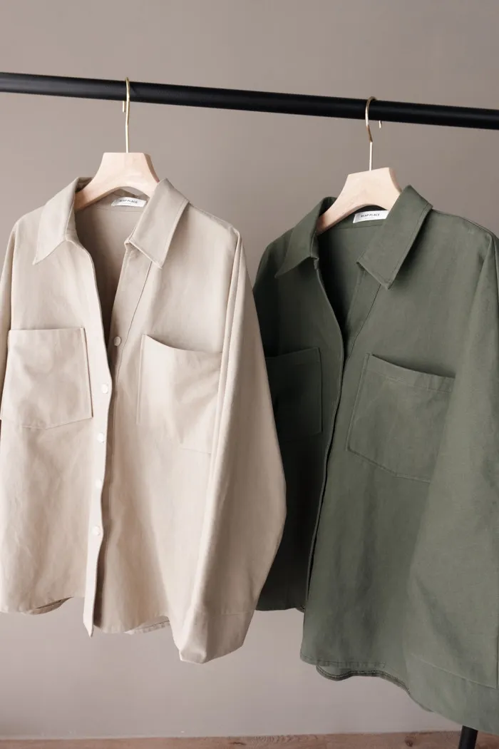 扣起來是件高磅襯衫 開釦又因為剪裁關係可以當成日常高級卡其外套