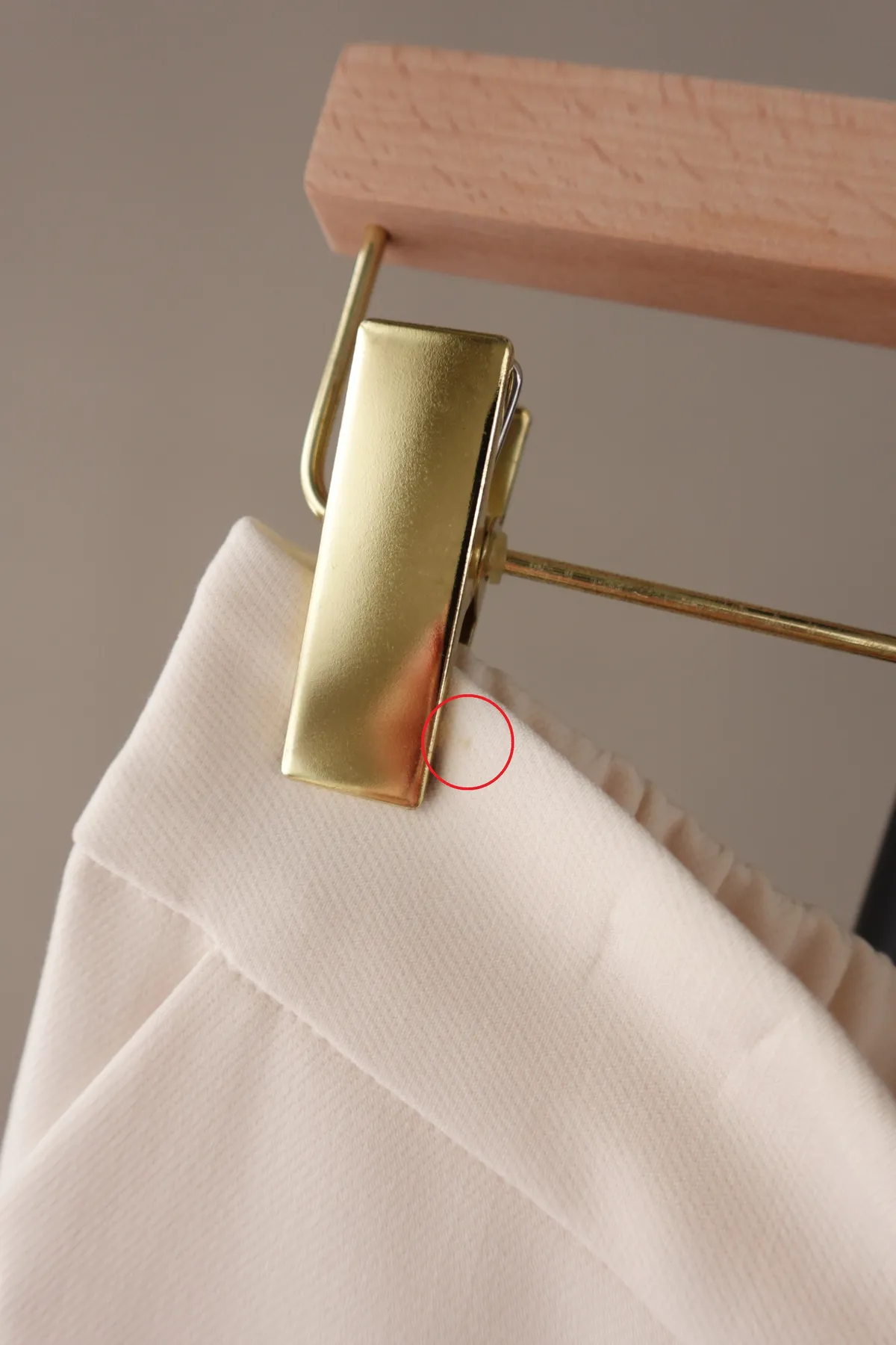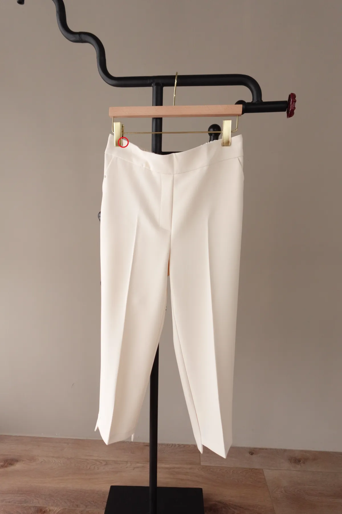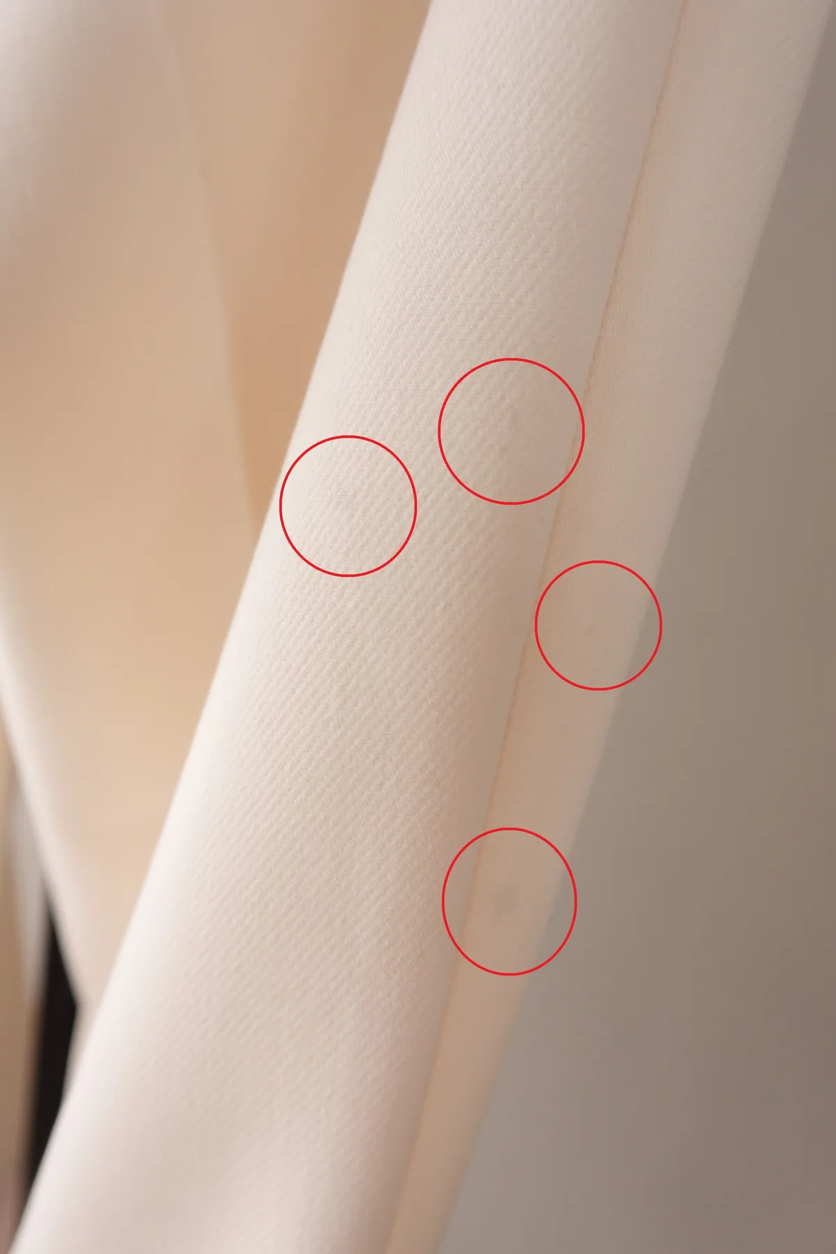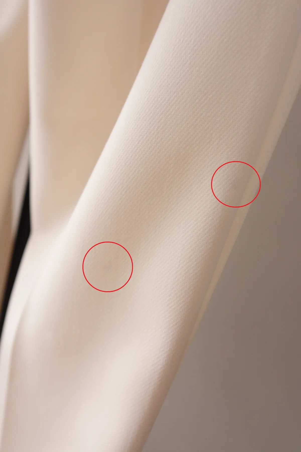 (濃白L瑕疵部位:正面右腰側有一點約0.1CM黃漬+右小腿正面有一點約0.2CM不明顯藍漬,不影響版型)