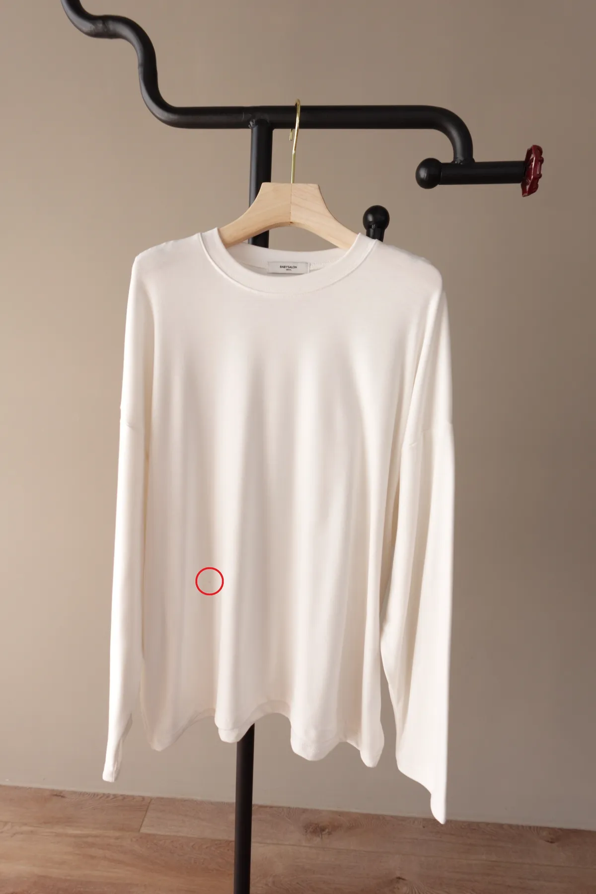 (瑕疵部位3:左袖背面有1cm纏線和0.5cm橘色染色痕跡)