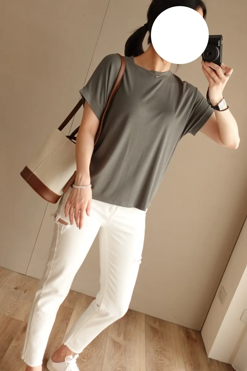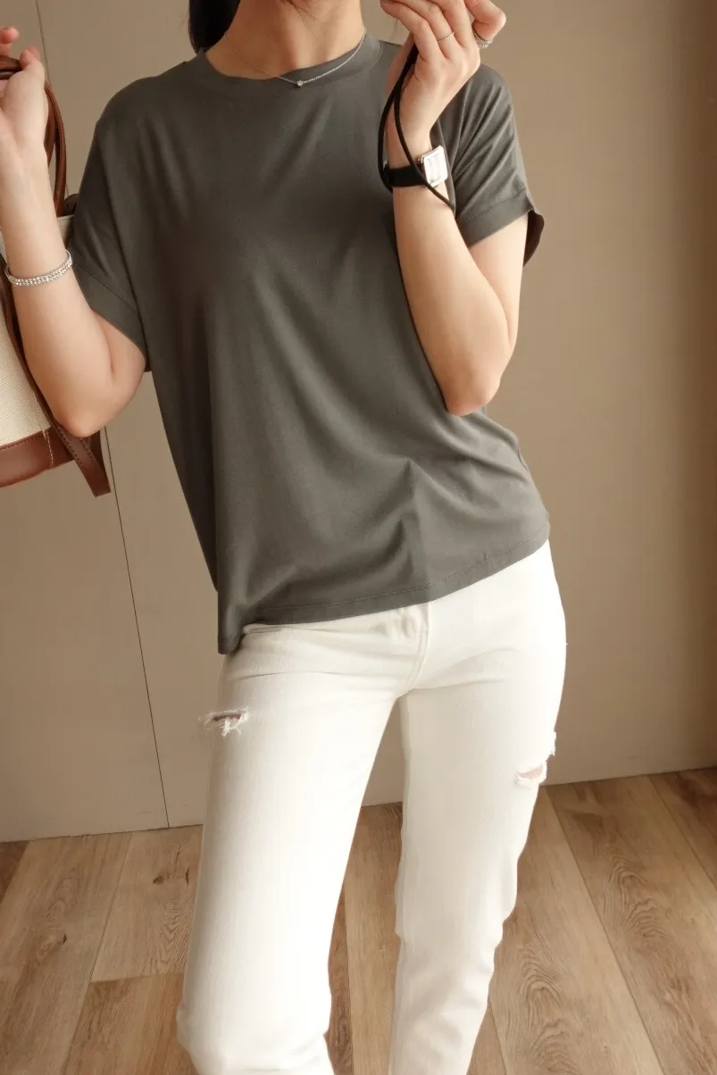 這件也不黏身體 質料細滑緊密卻又透氣!真的非常好穿♥ 我稱它為會呼吸的棉質