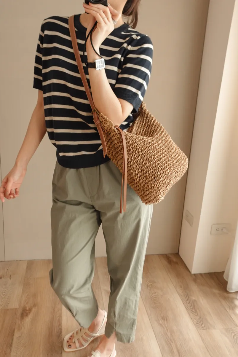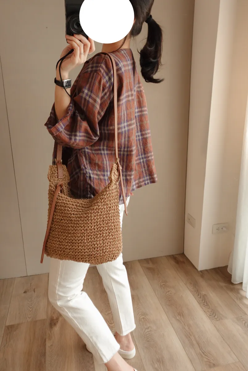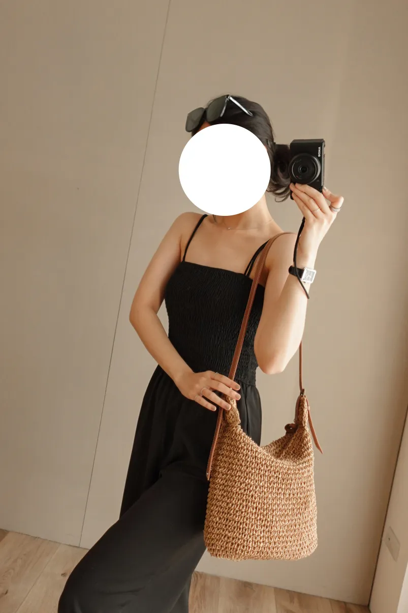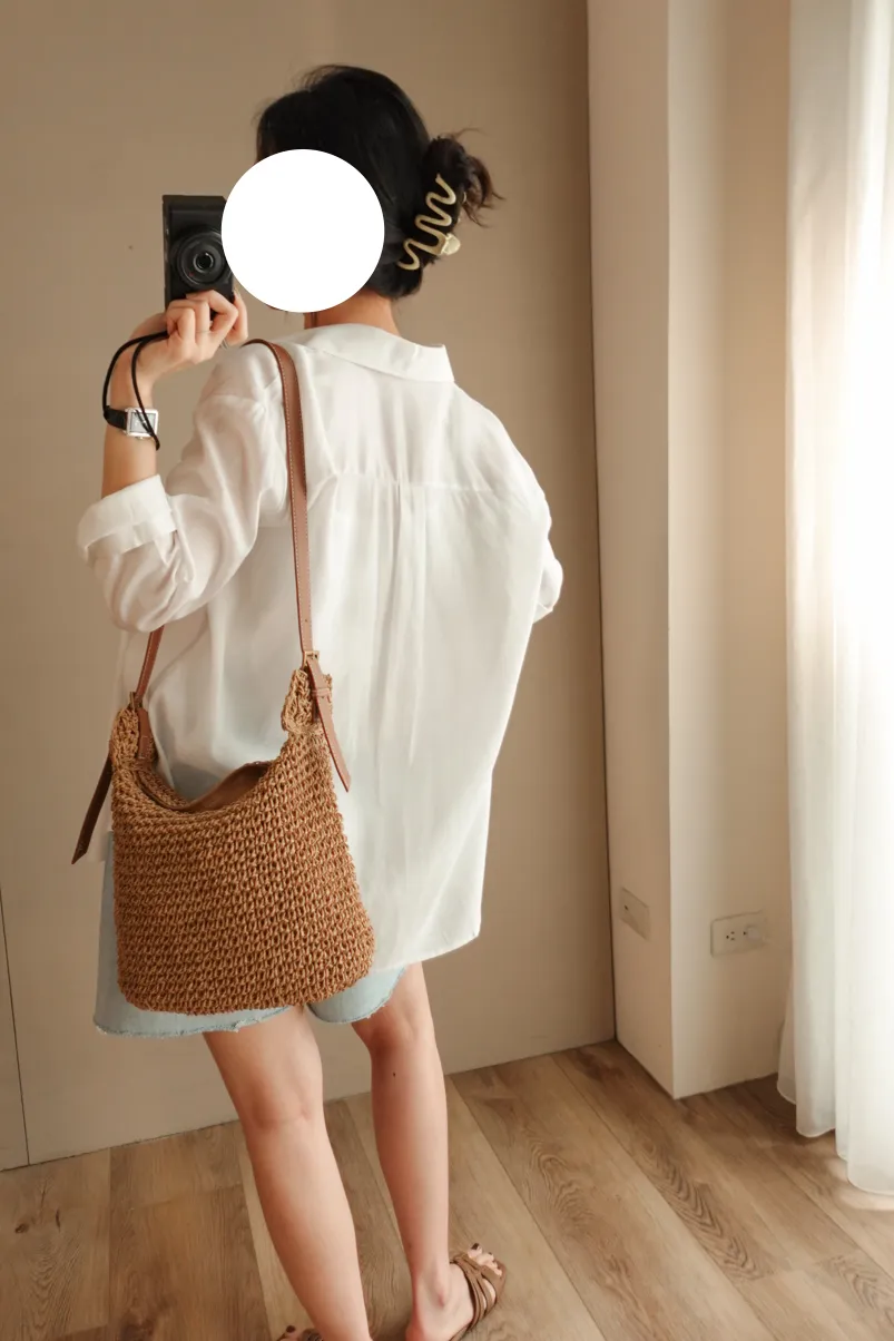因為草編包的柔軟特性 在上緣開口處還會自然的有點垂垂 超級好看:)