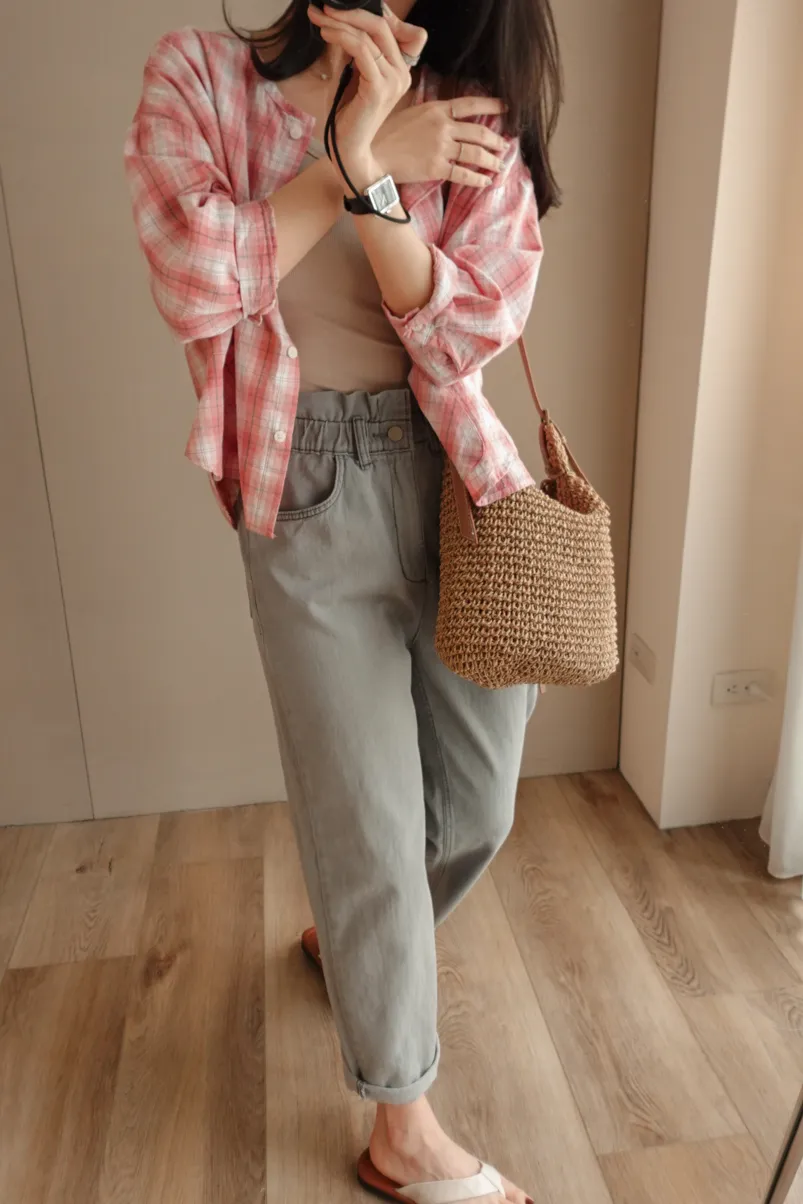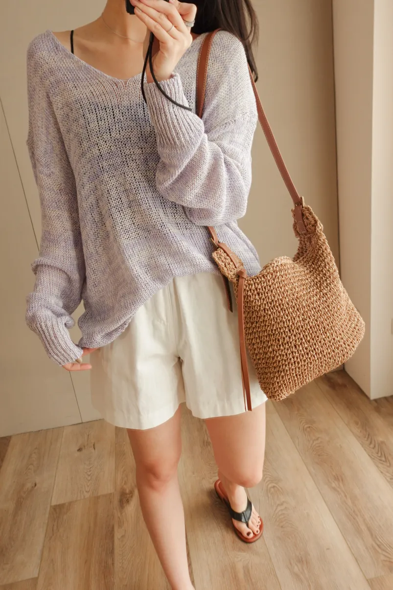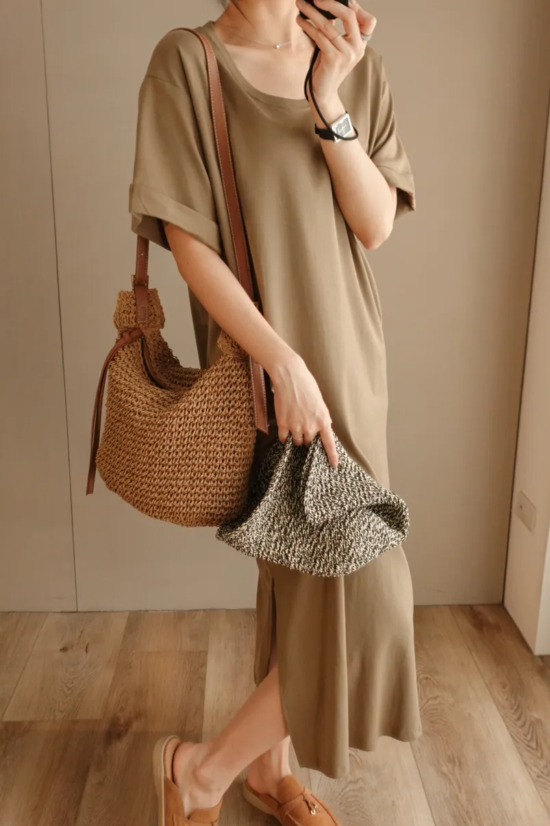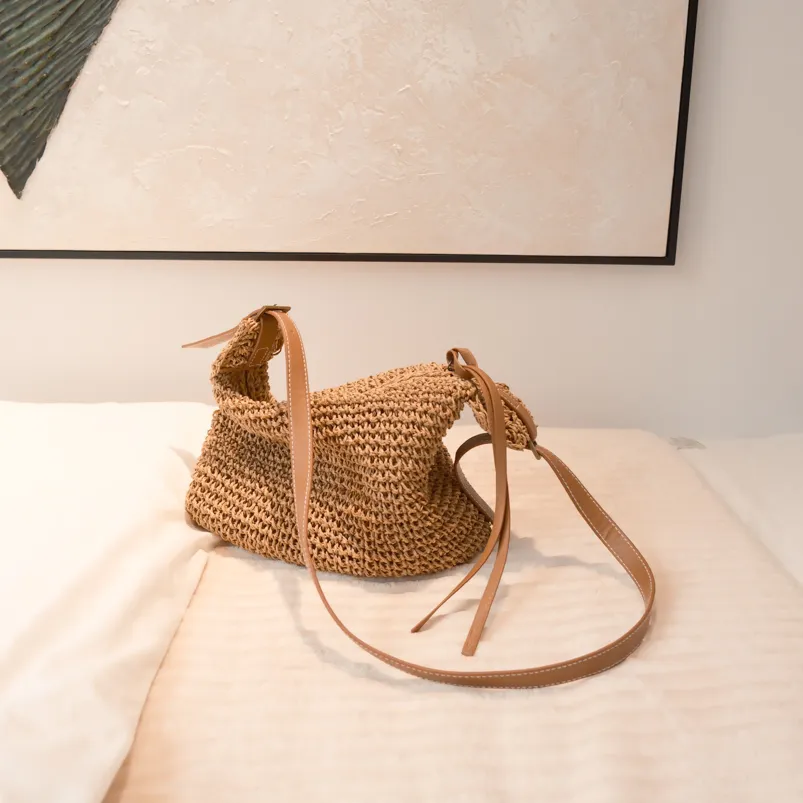 因為草編包的柔軟特性 在上緣開口處還會自然的有點垂垂 超級好看:)