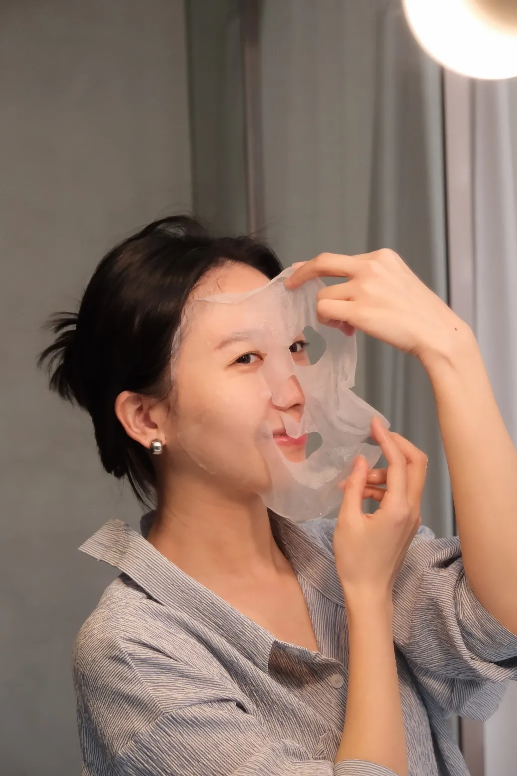 最後分享面膜敷在臉上時會感受到面膜質地的特殊