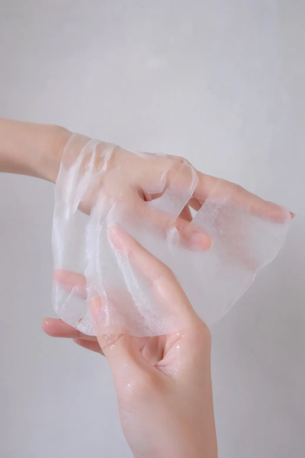 超薄透的質地是100%天然纖維(自尤加利樹中萃取)塑造出的隱形感也稱為不織布界的生物纖維面膜
