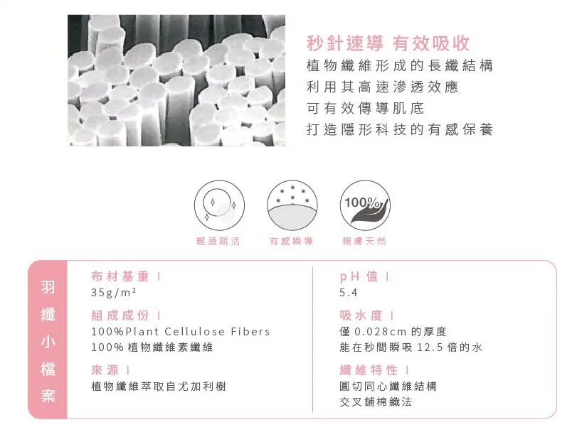 僅0.028cm的厚度能當下瞬吸12.5倍的水量.有非常厲害的高速傳導與滲透性可傳導至肌底