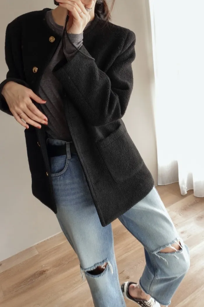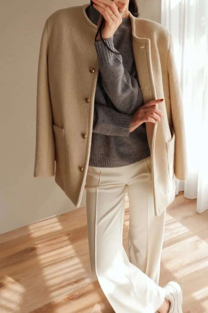 質料也很優雅 添了一點羊毛的呢料視覺更有分量感