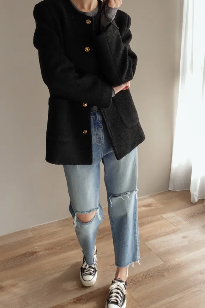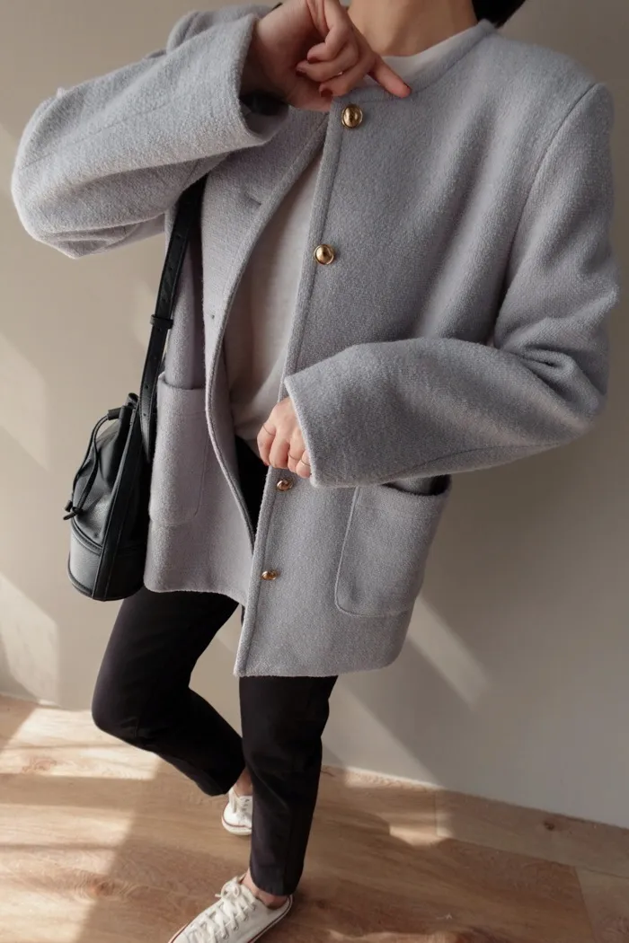 百搭外型下搭配了銅色釦子就像戴上了飾品一樣更添精緻