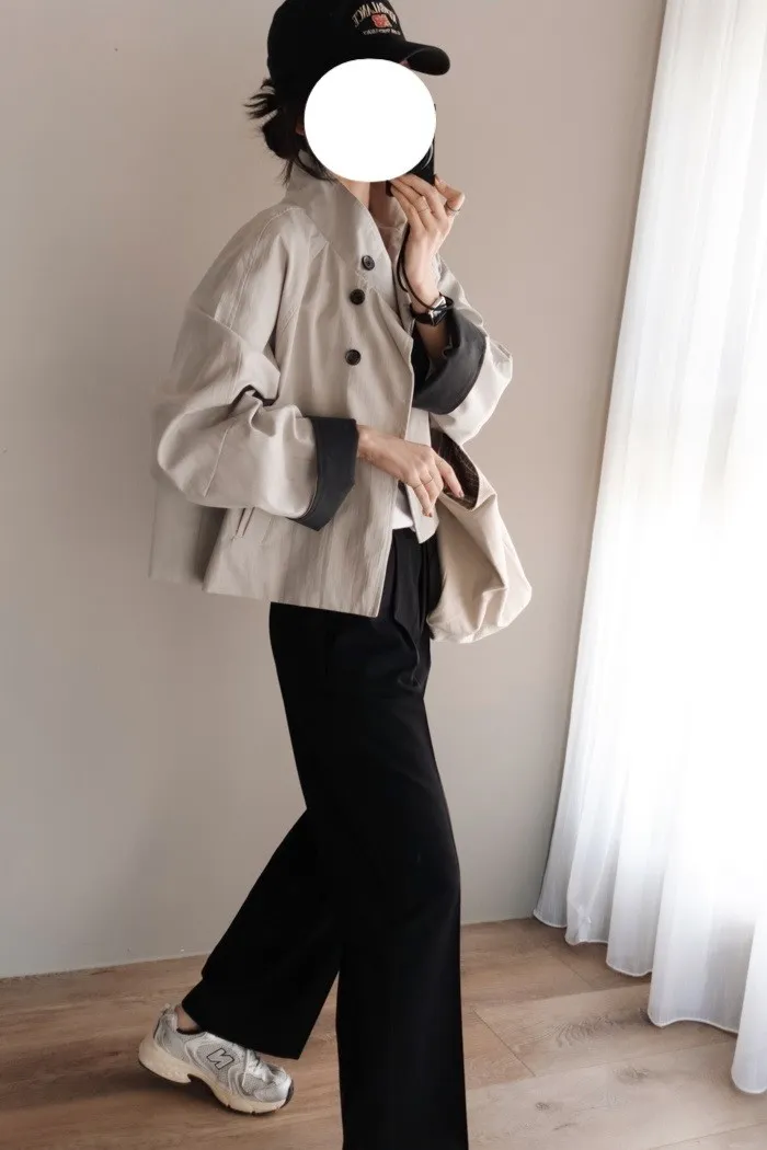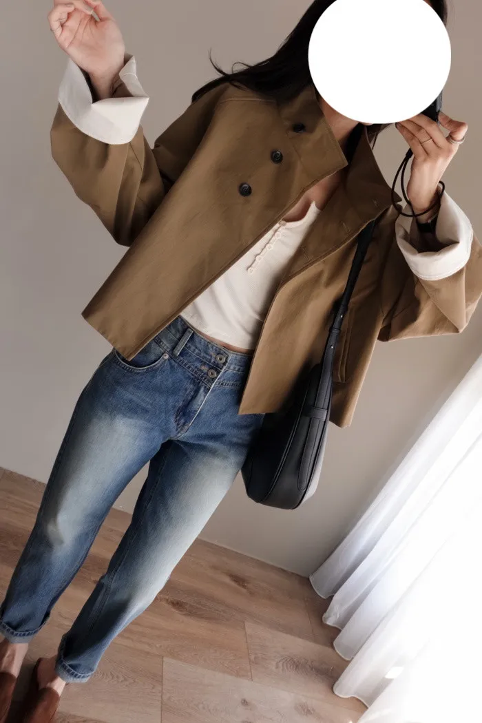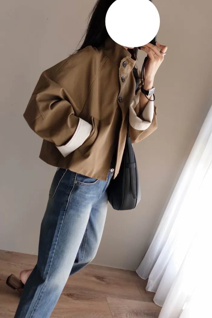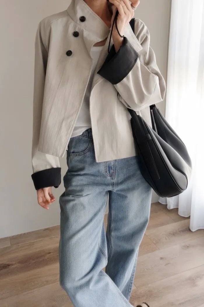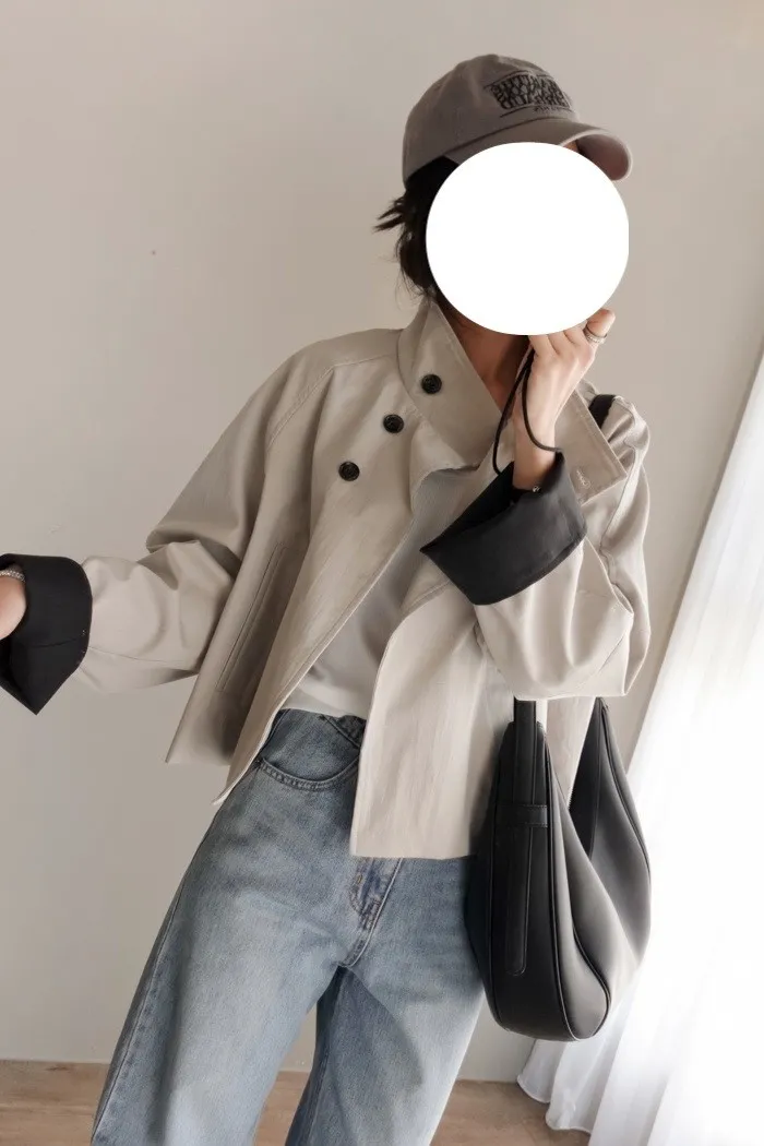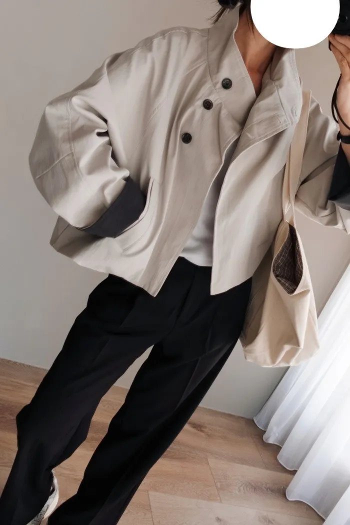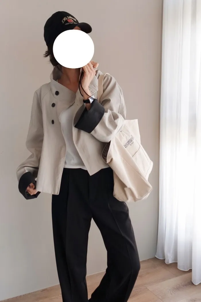 材質是超挺的卡其質料 所以才能設計成這種很有氣場的質感大領片♥