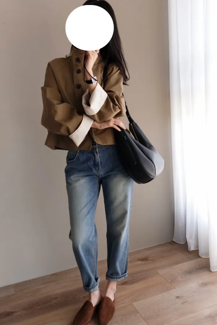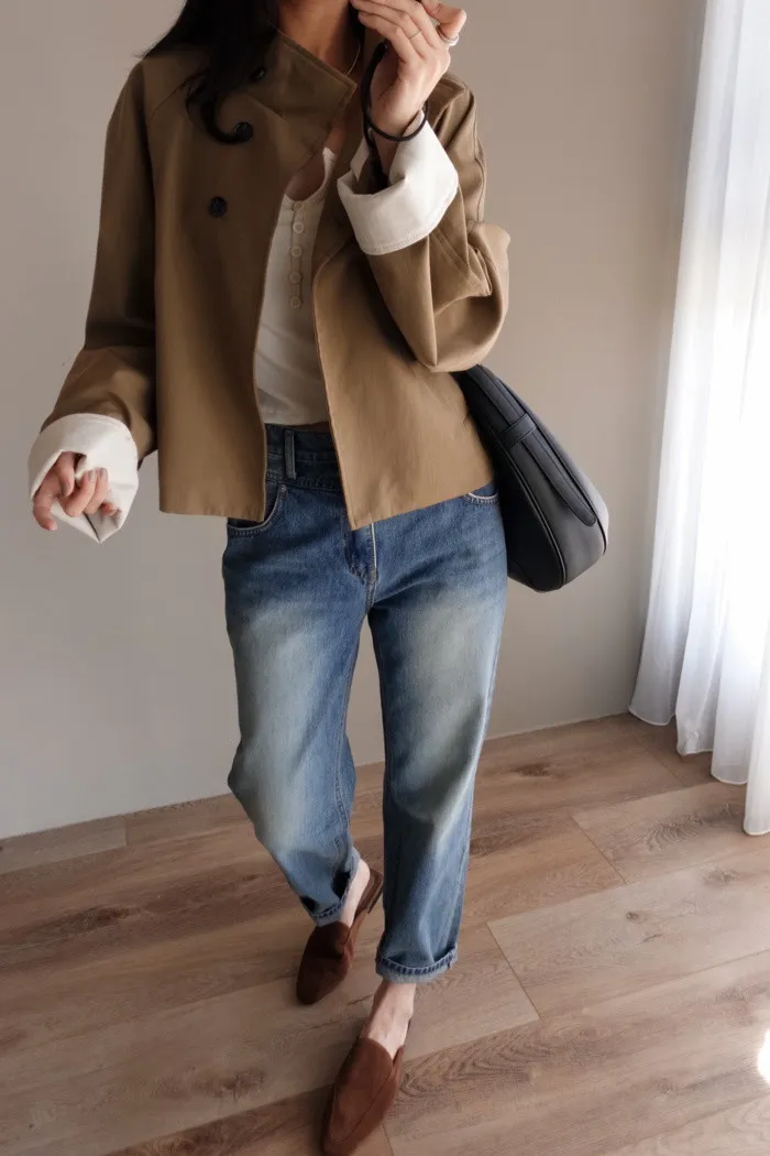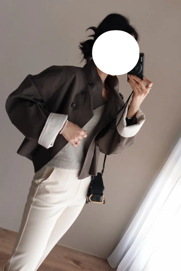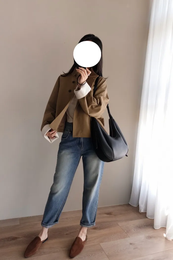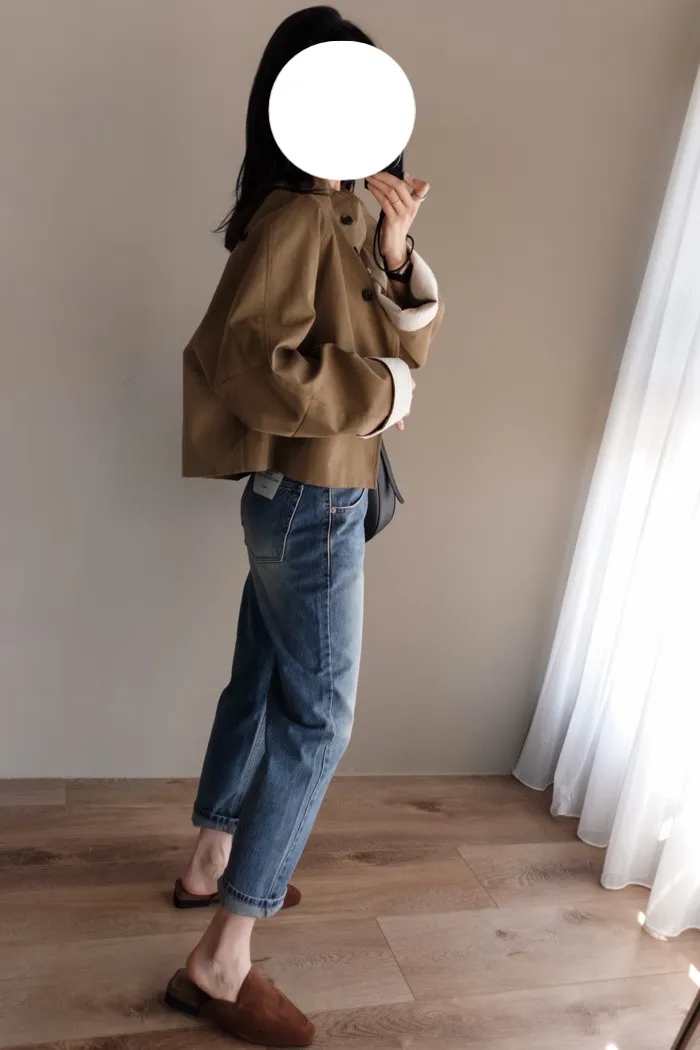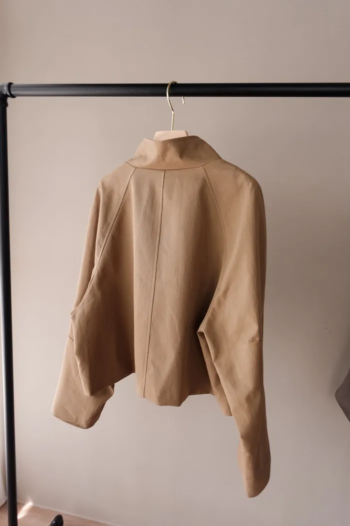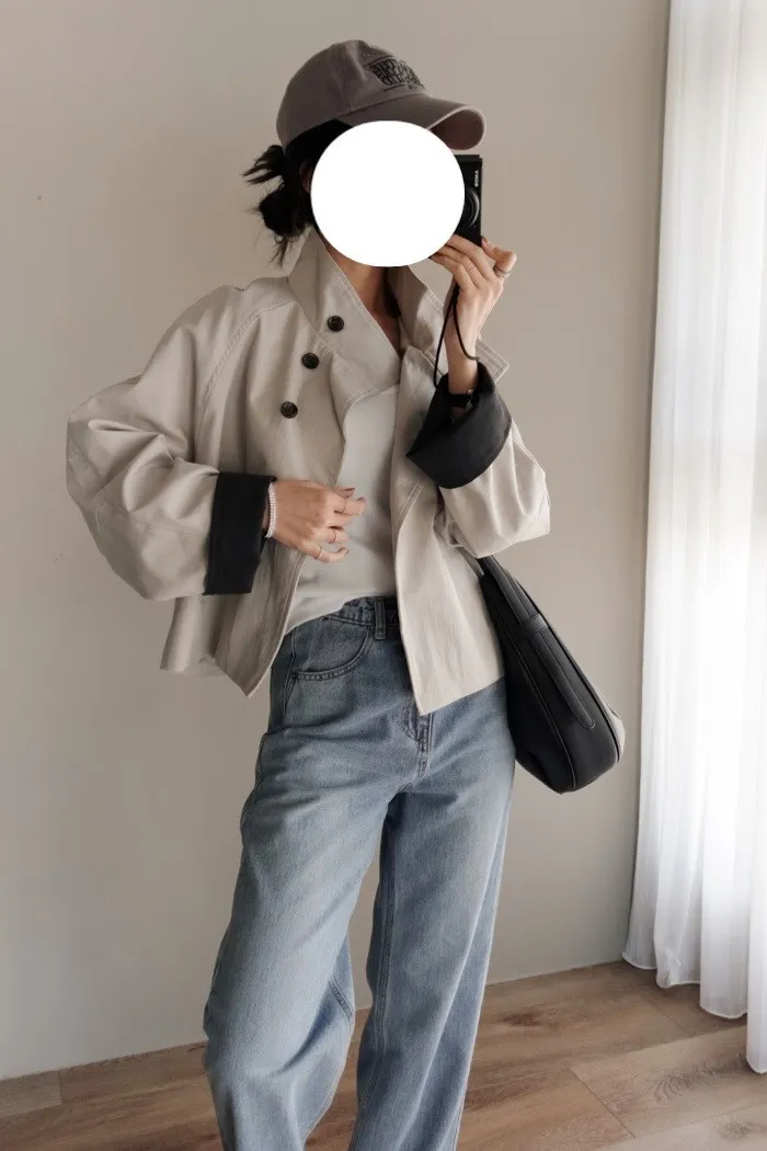 材質是超挺的卡其質料 所以才能設計成這種很有氣場的質感大領片♥