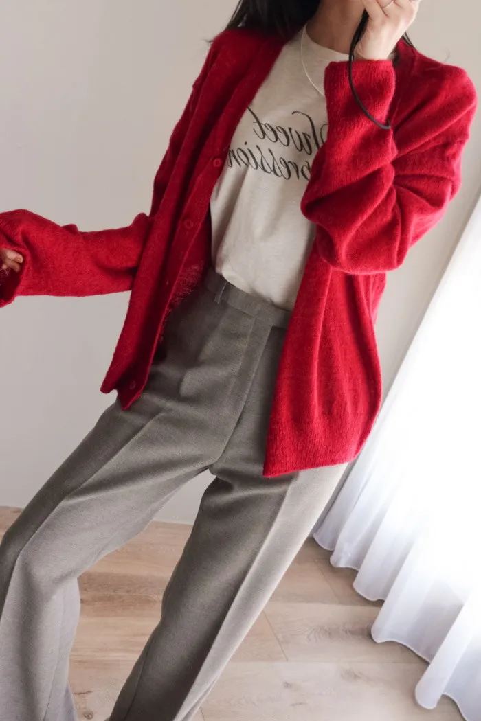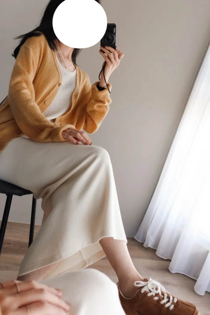 針織的垂墜感將版型帶出慵懶氛圍