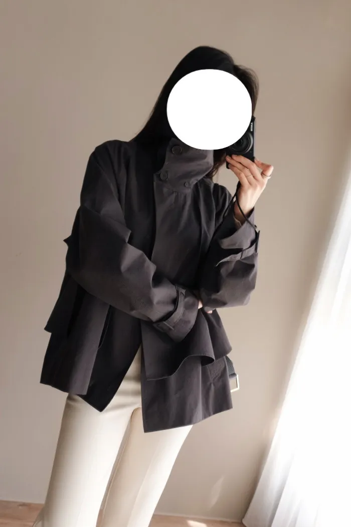 可以扣起來變成立領穿(下擺會微展很像斗篷超好看♥)