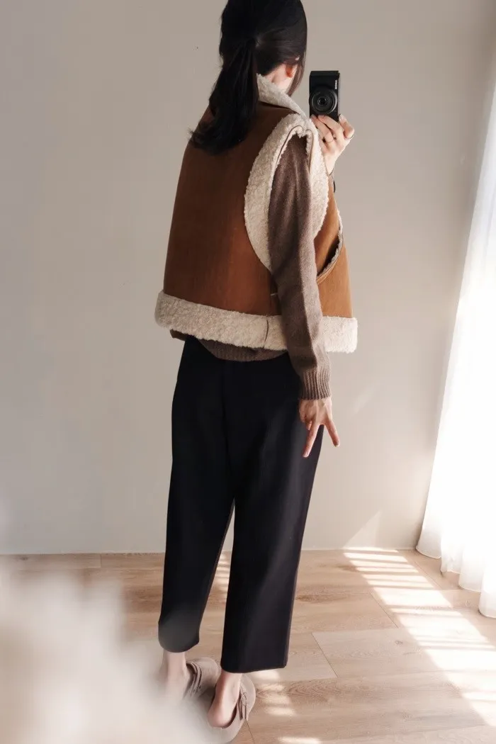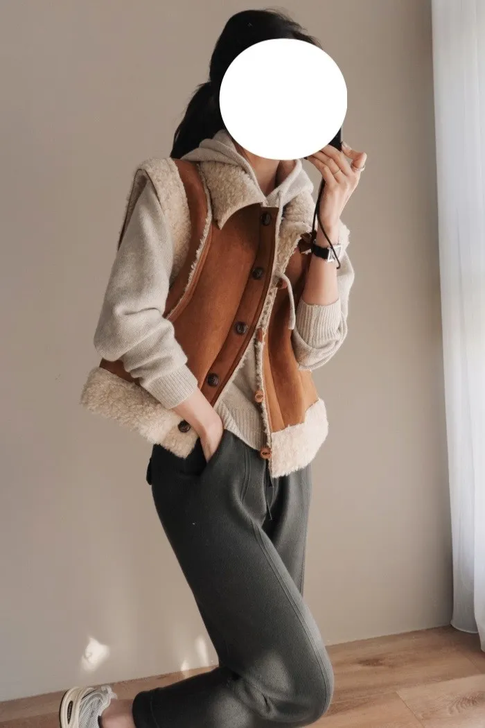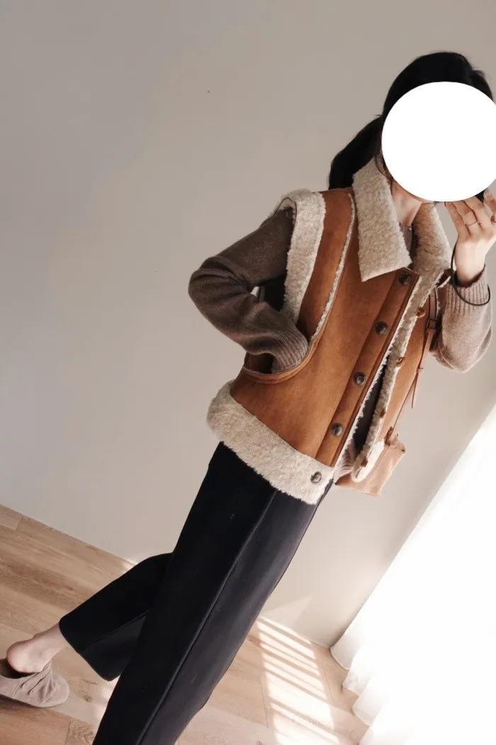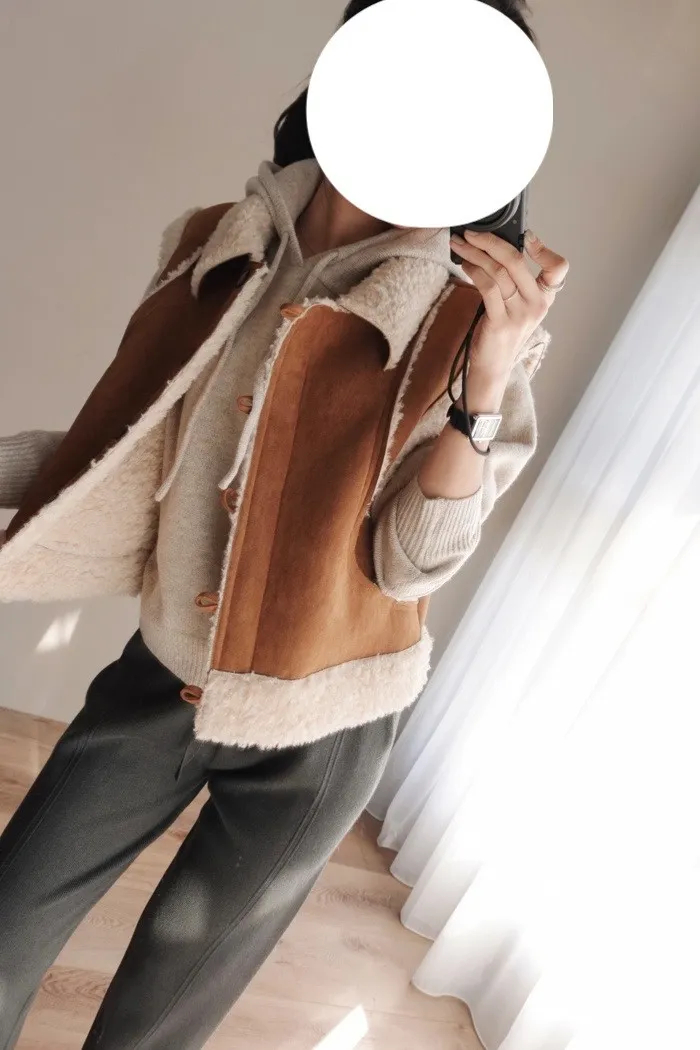 這件麂皮羔毛奶茶背心一定要帶它回家~~