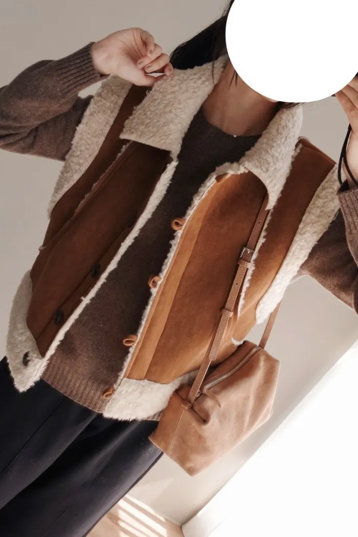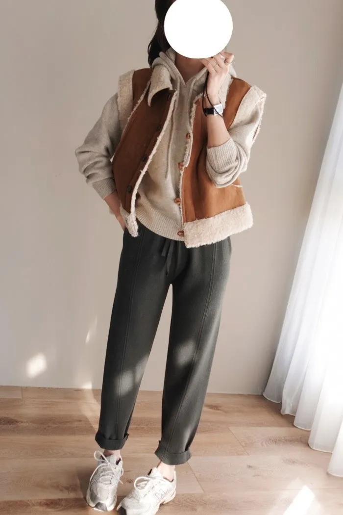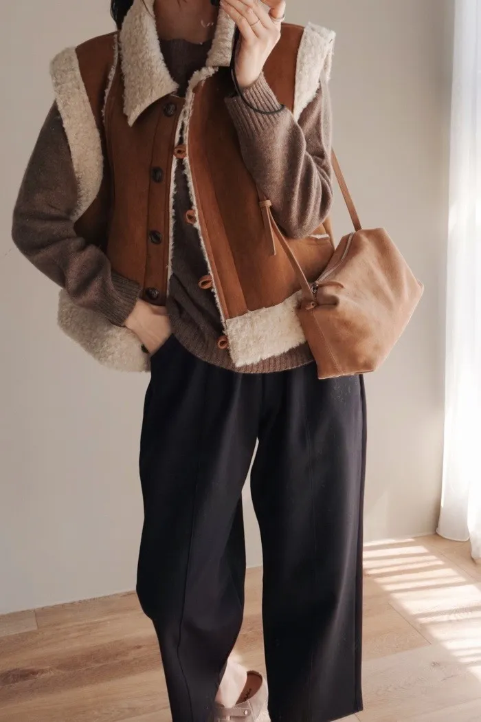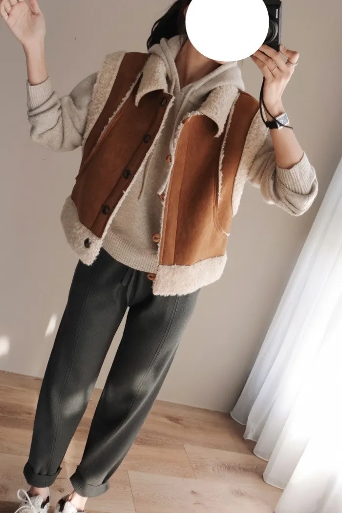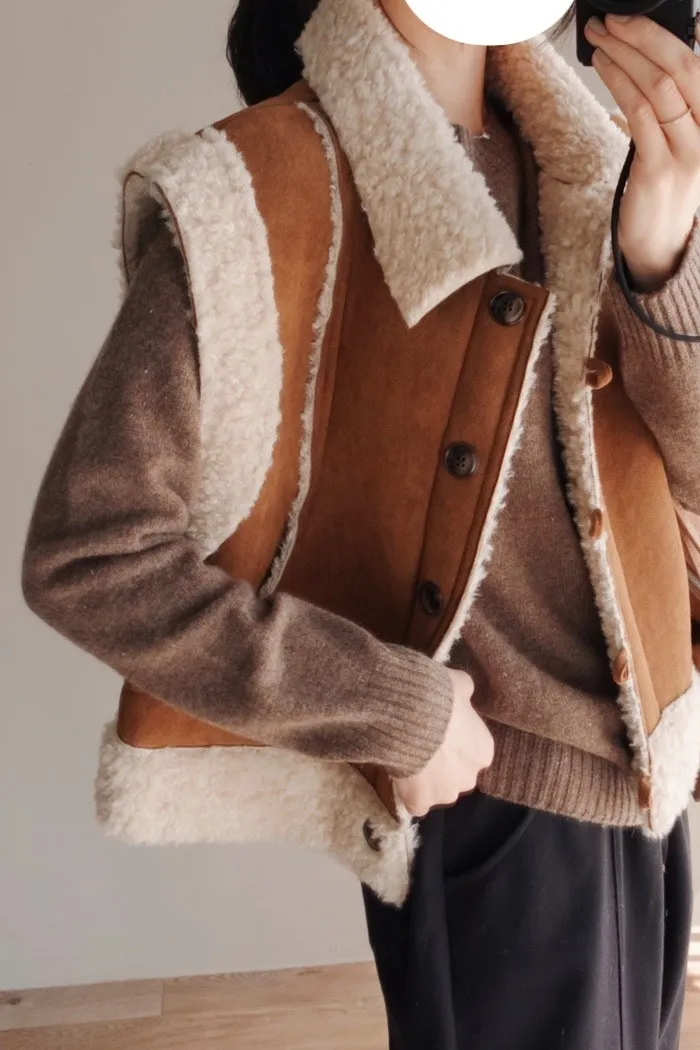 這件麂皮羔毛奶茶背心一定要帶它回家~~