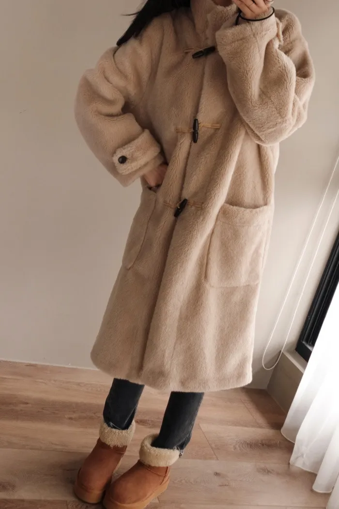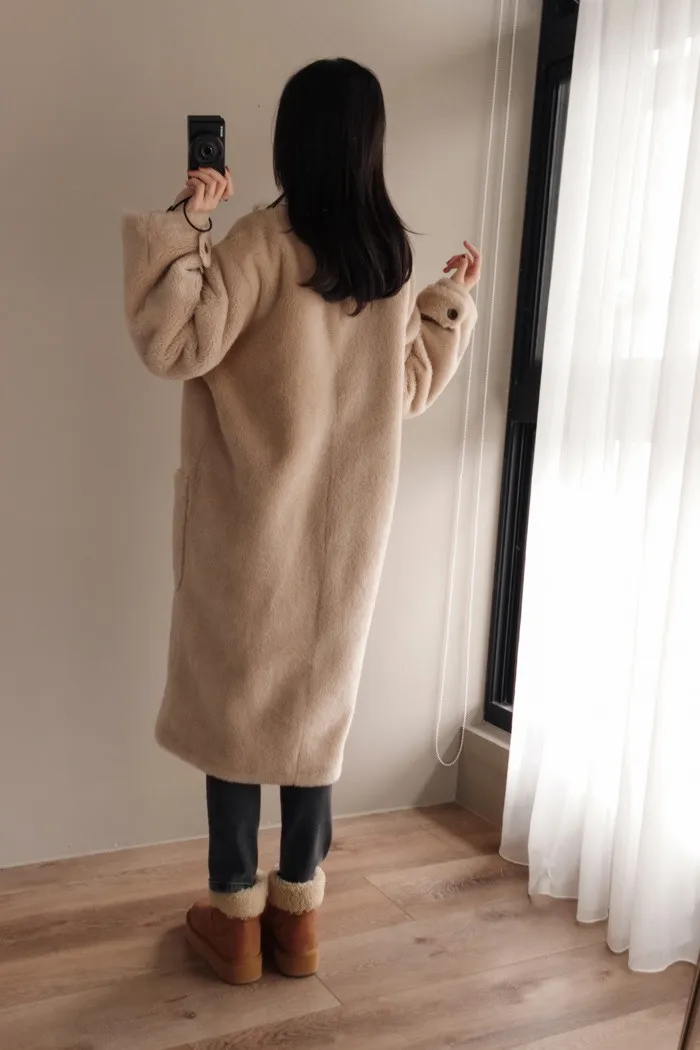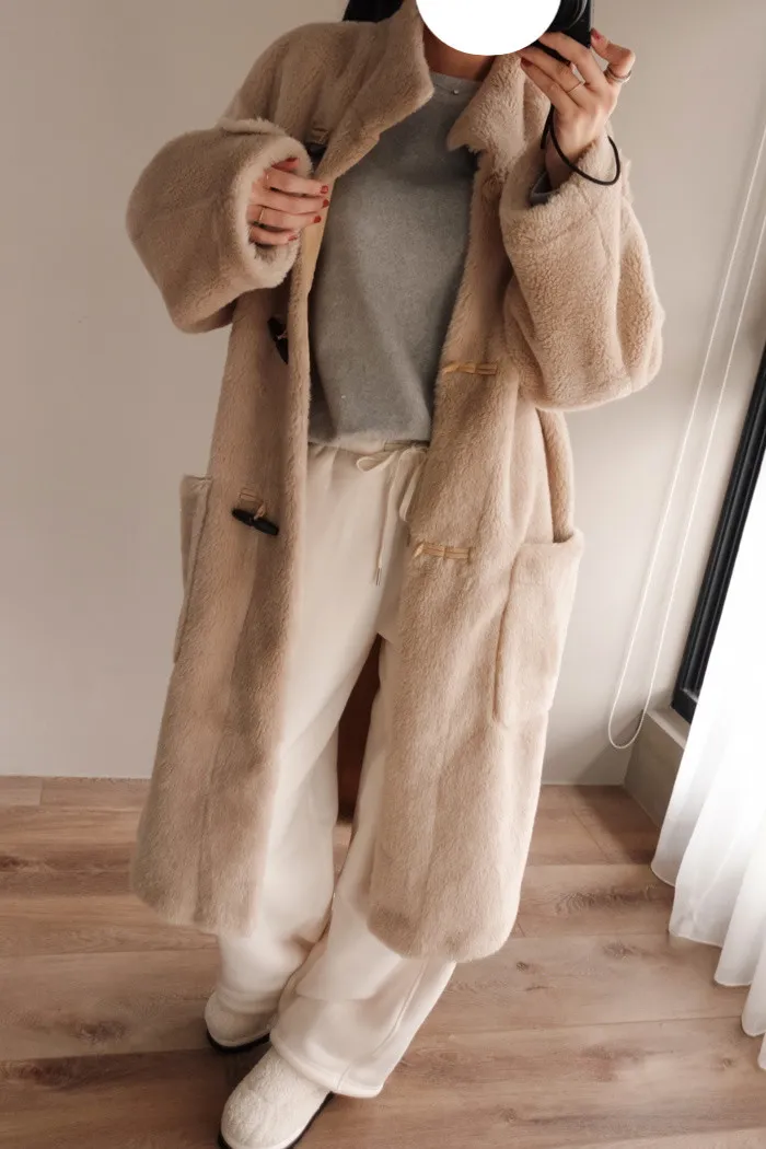 很少能看到這麼長版的毛絨絨外套