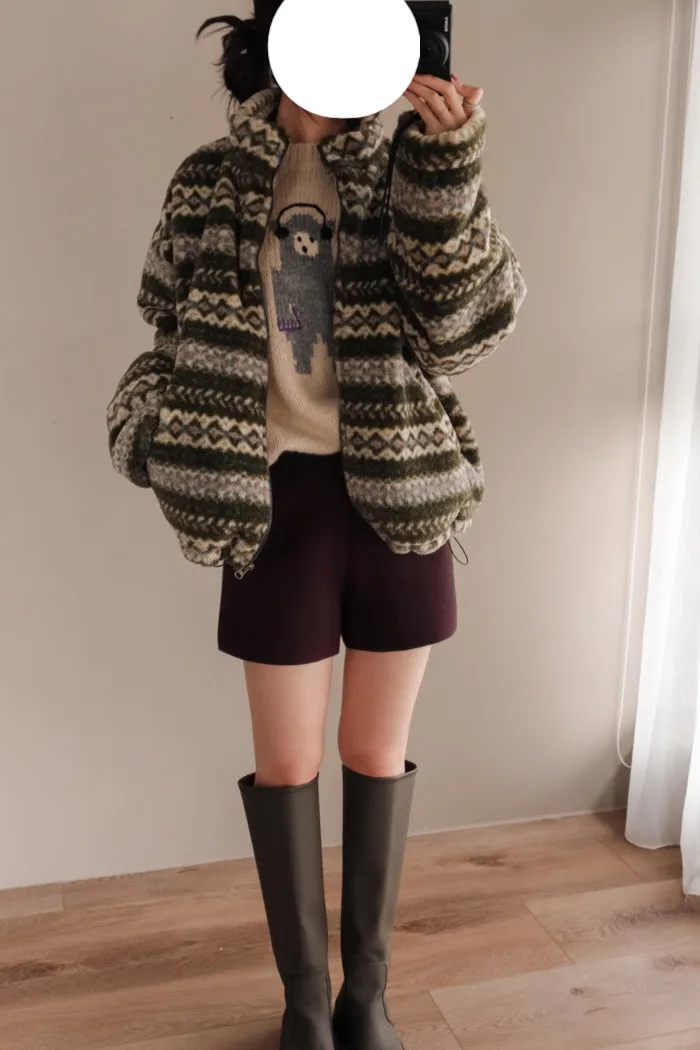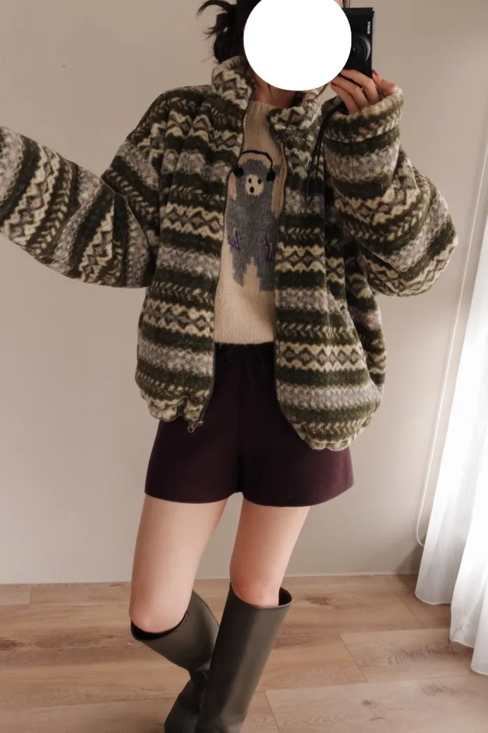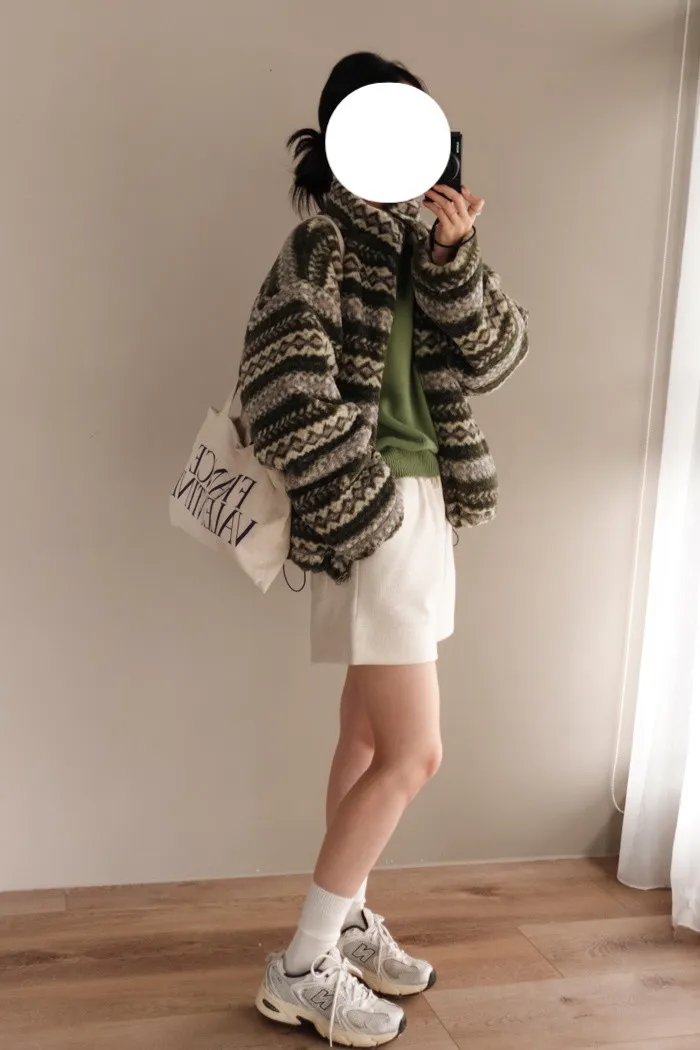 外套版型帶有鬆度 穿著時是會將整身裹起來的感覺非常幸福