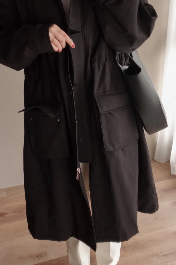 外套有著拉鍊與釦子完整設計 兩次還有立體口袋