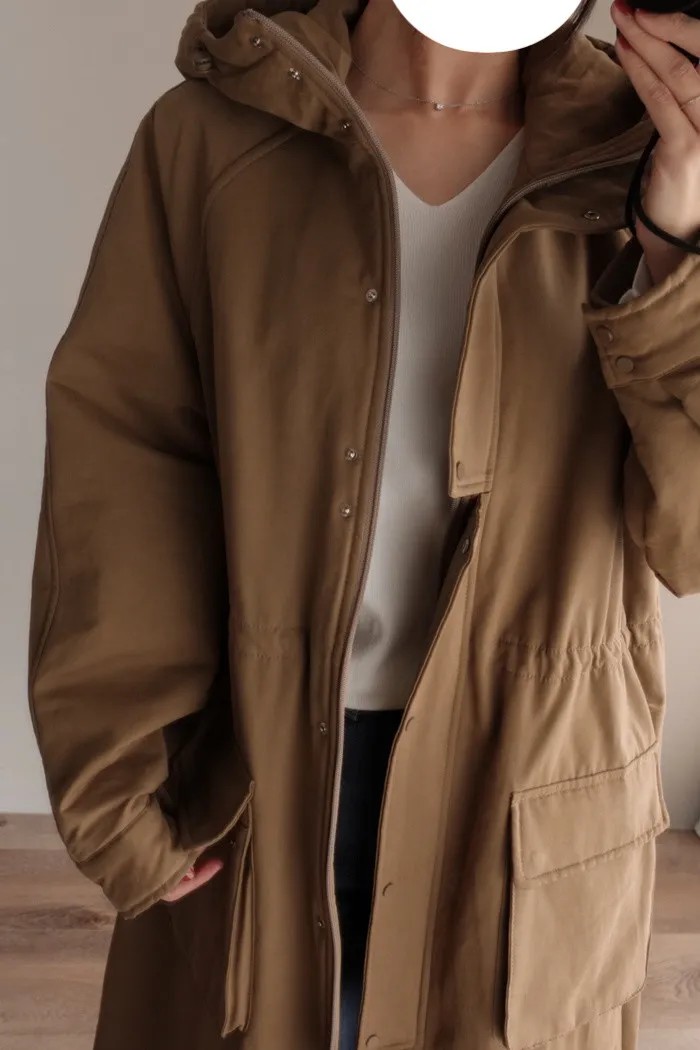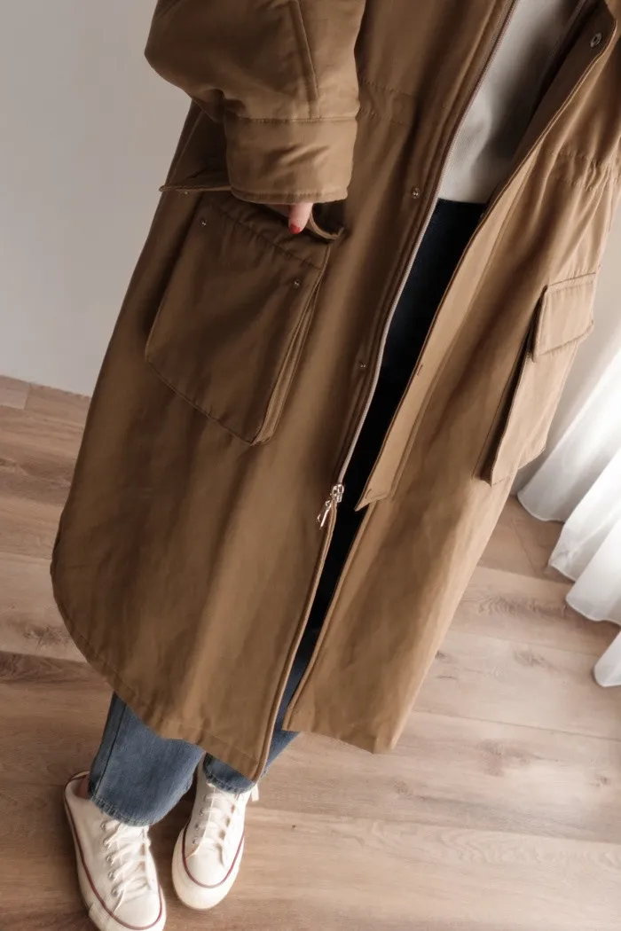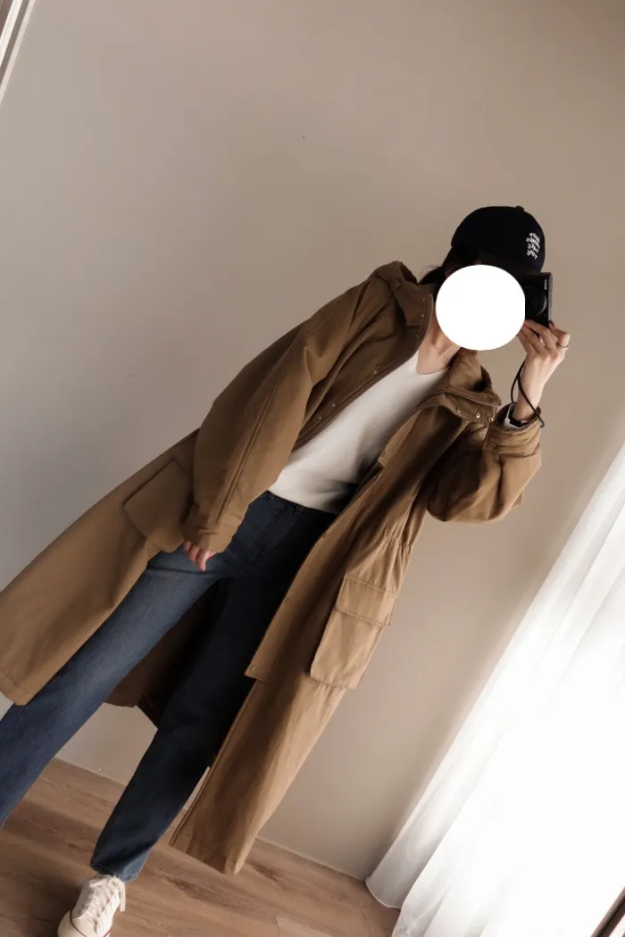 這樣的選擇能讓卡其外套不顯厚 但又非常保暖♥