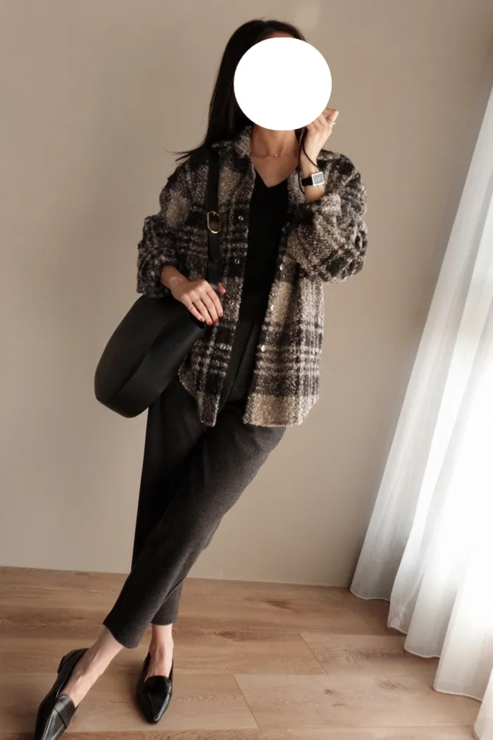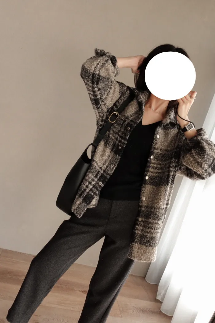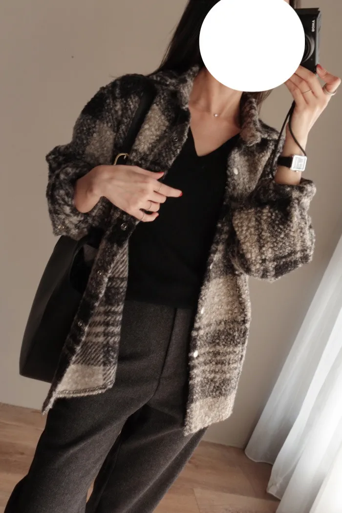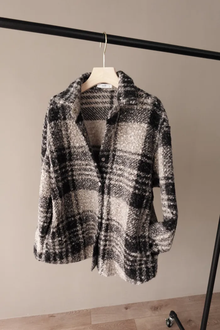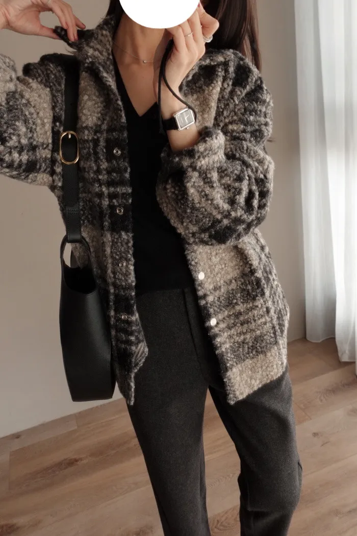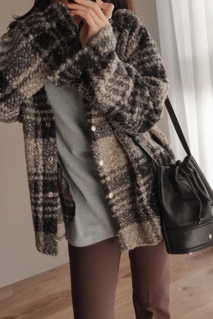 首次見到這種使用捲捲圈感棉呢棉製的襯衫式外套