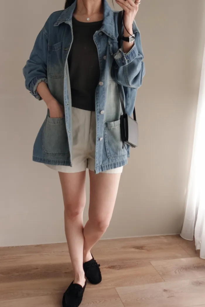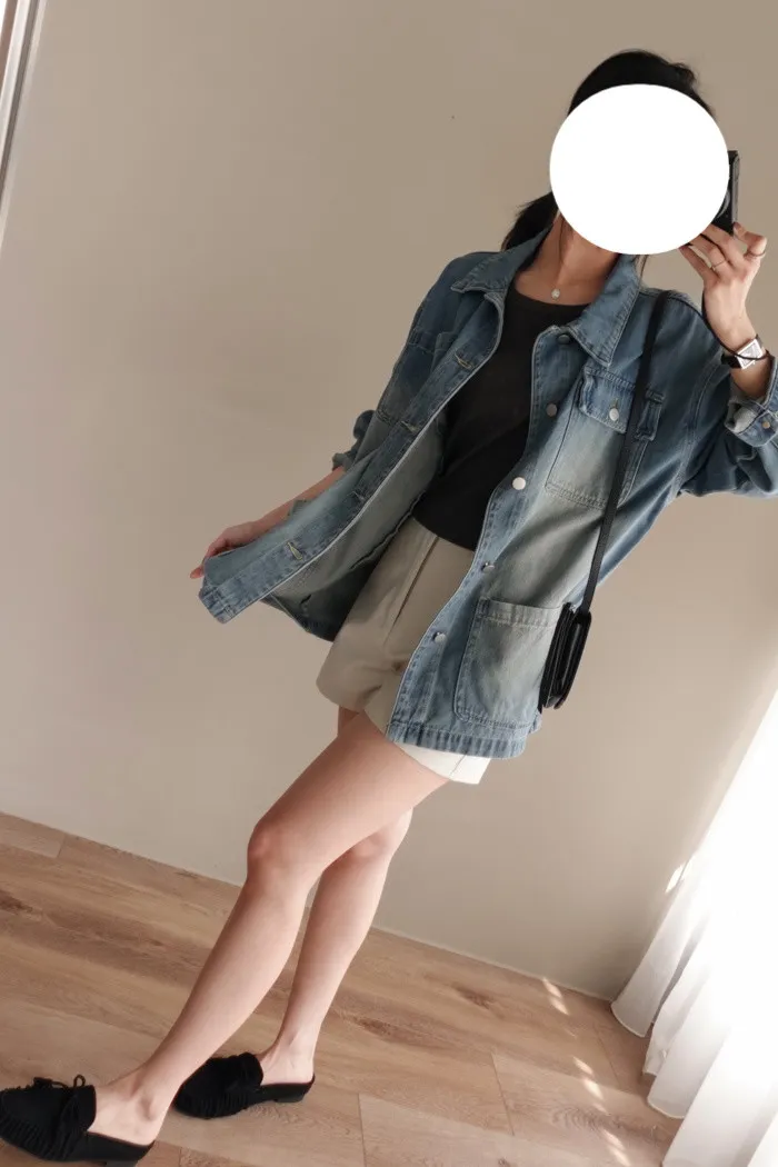 配上短褲與外套同長度後也會有牛仔洋裝的影子跑出來♥