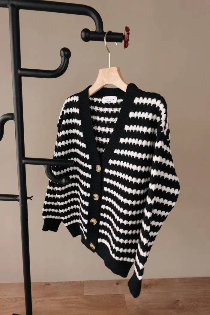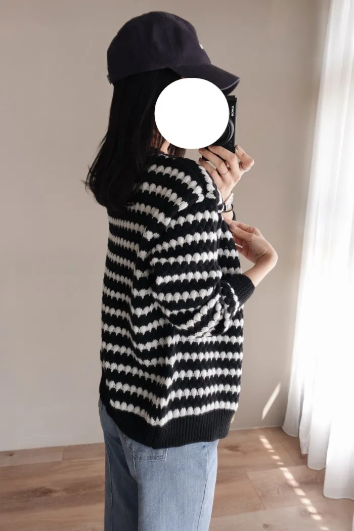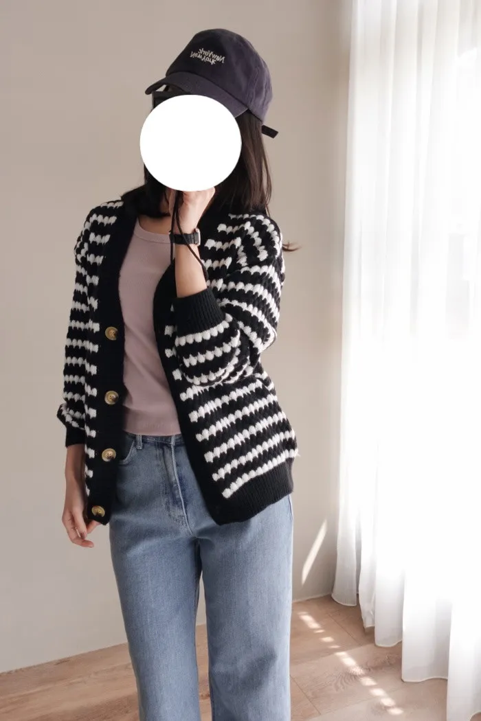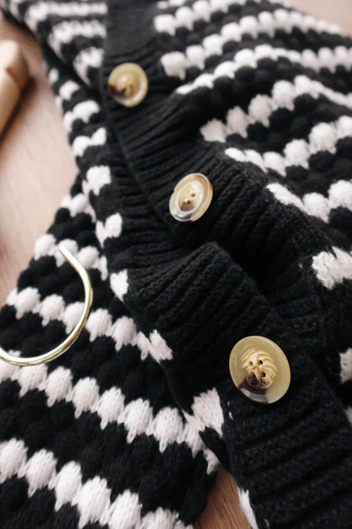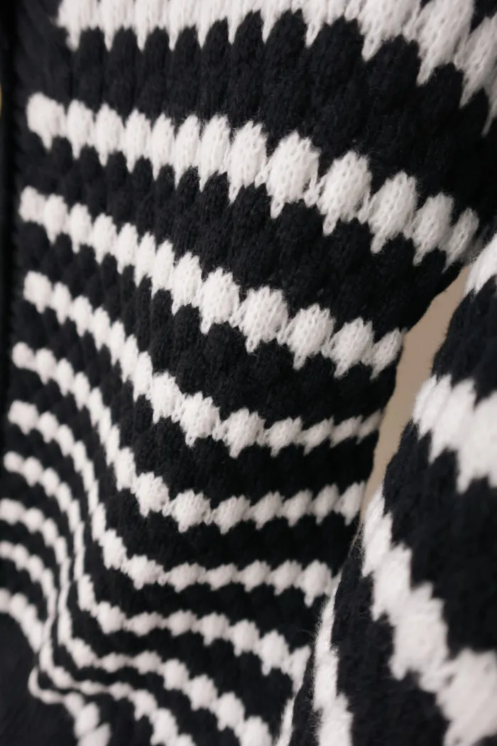 一球一球小奶油織線充斥在黑條紋間的空隙中