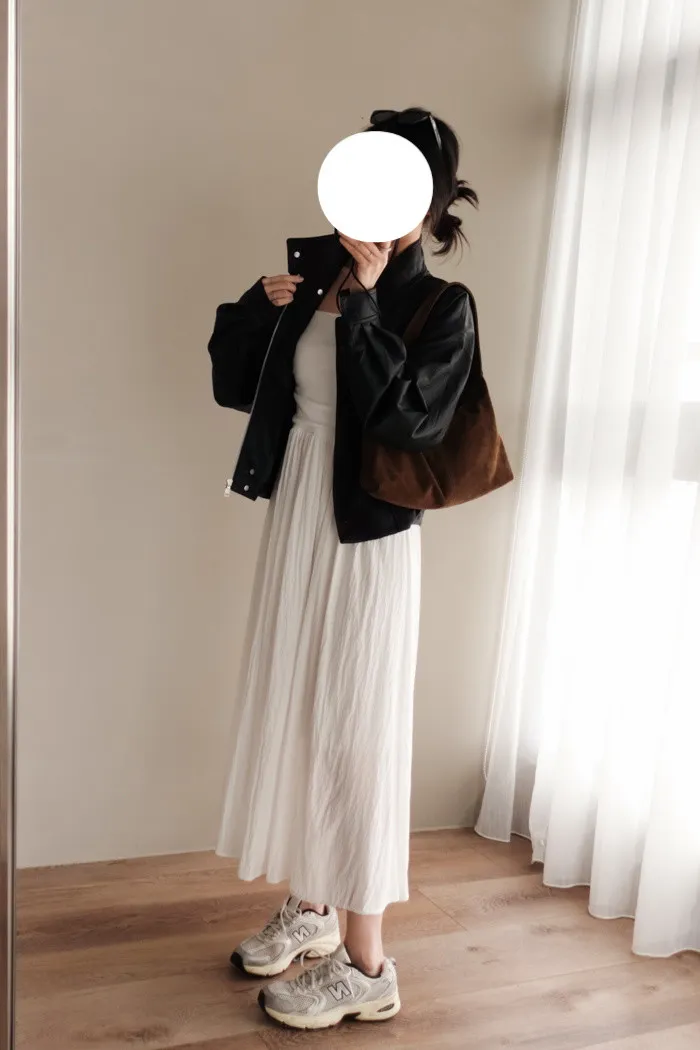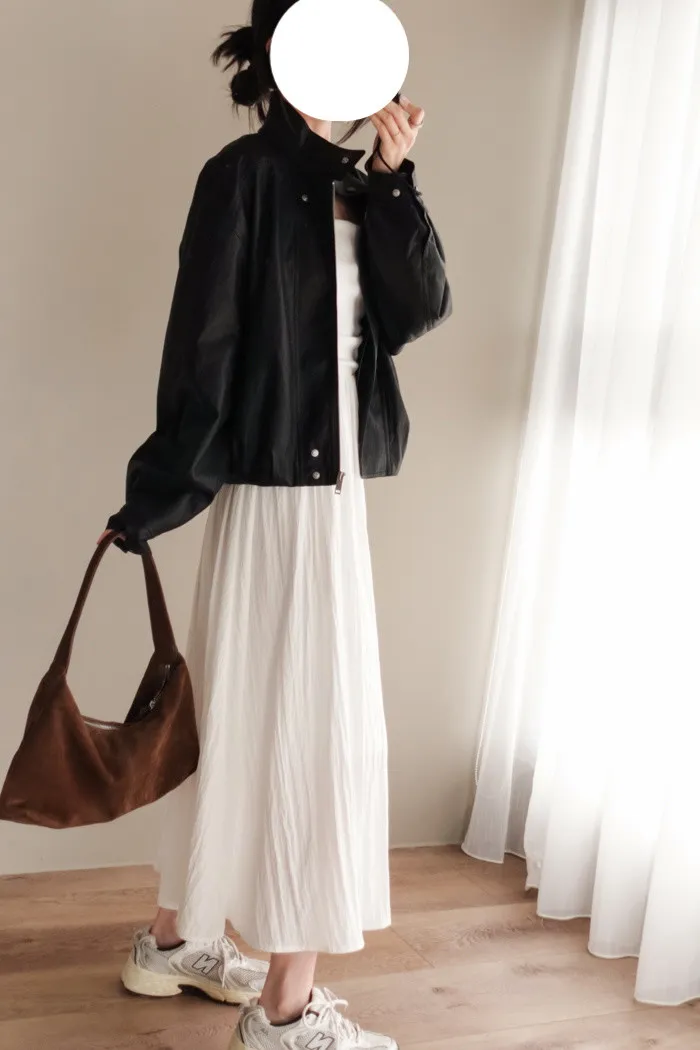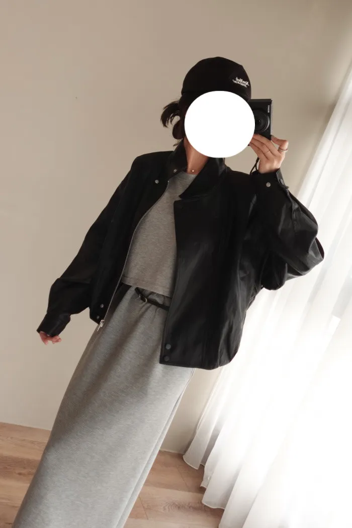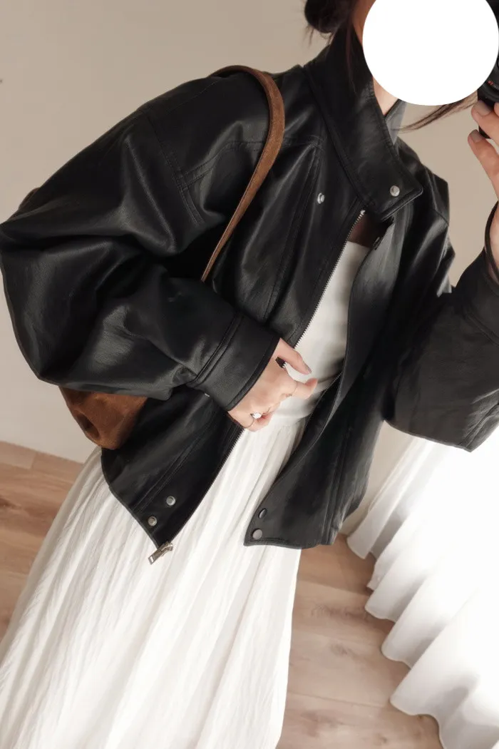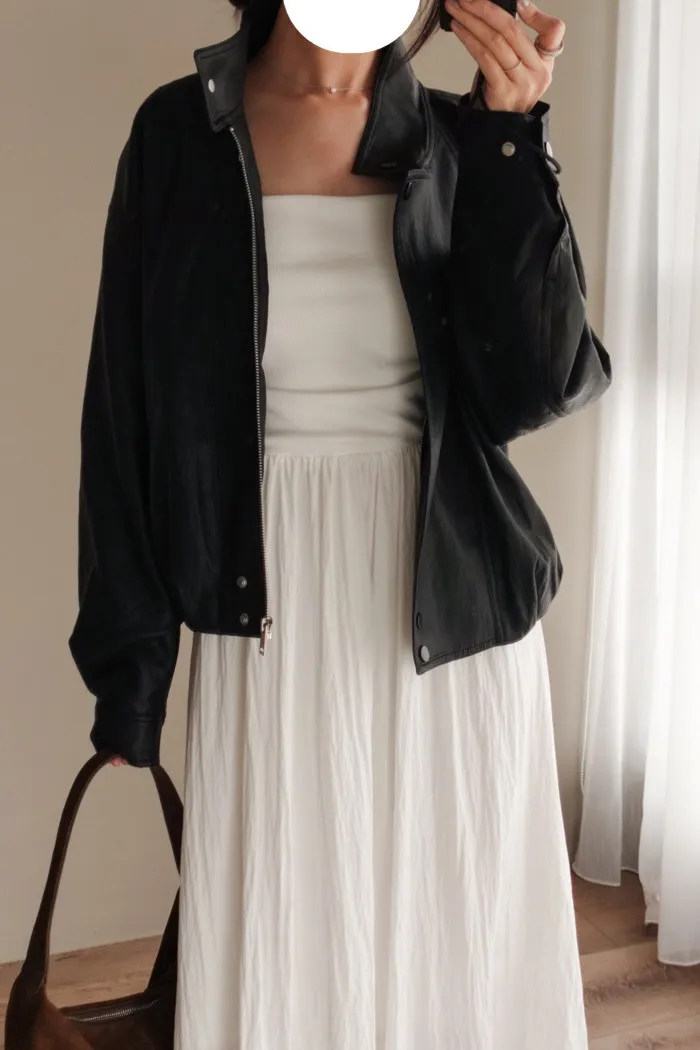 // 可參考細線肩帶洋裝頁面 同時有穿到本月兩款相似皮衣可進行比較唷 //