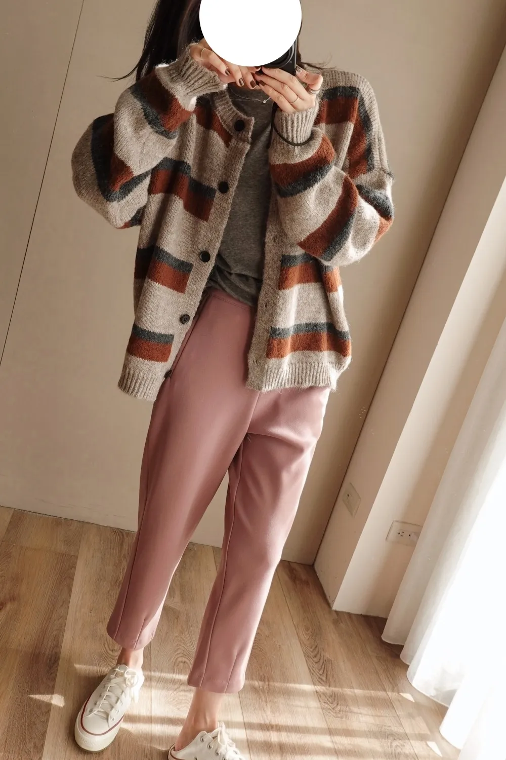 他像是老爺褲 又有點蘿蔔褲的影子 但是又像是直腿西褲