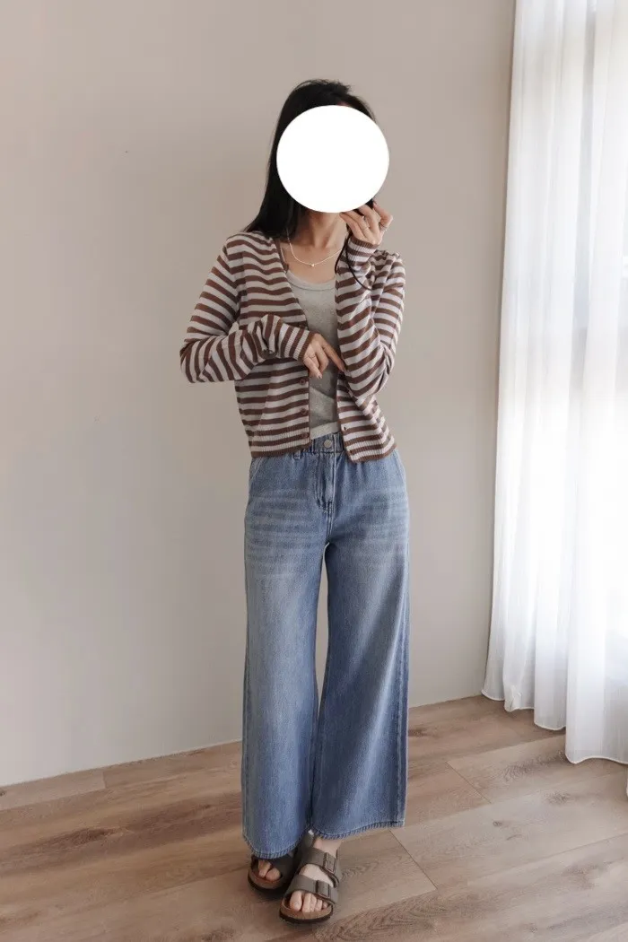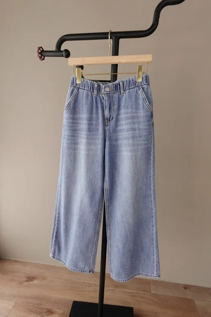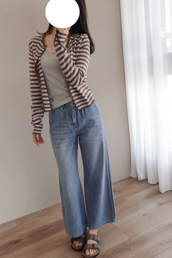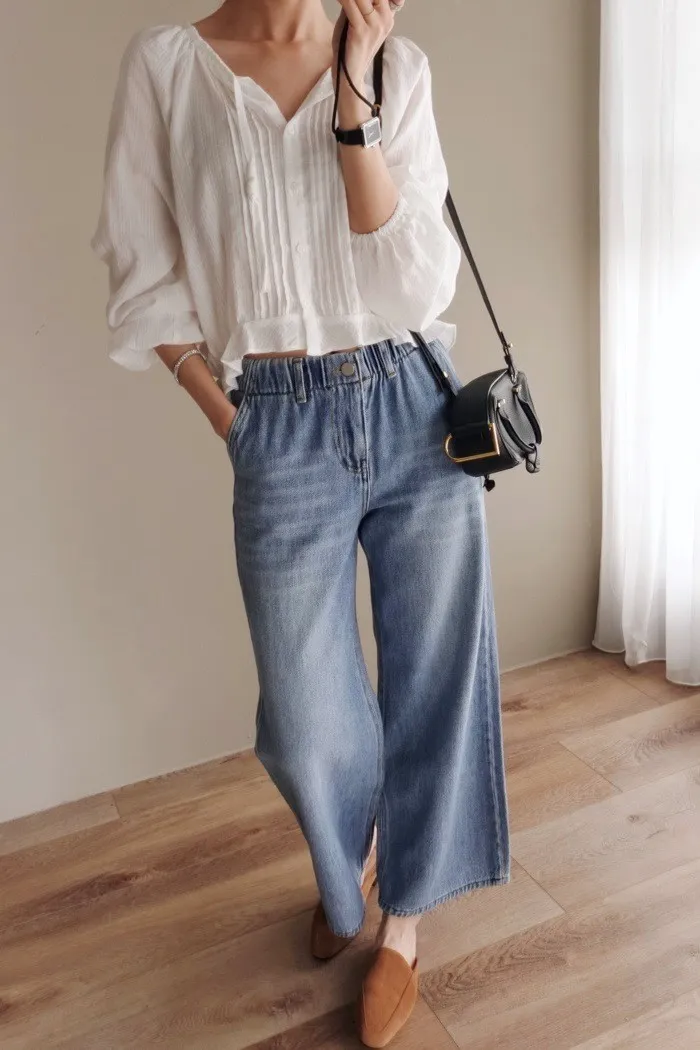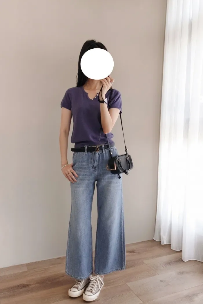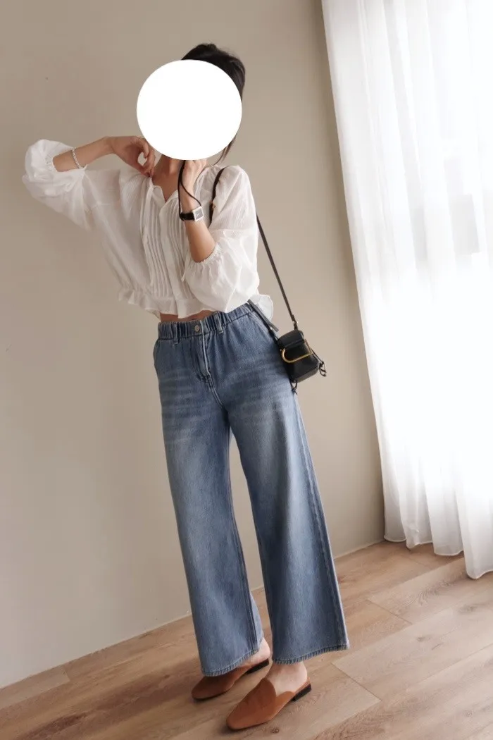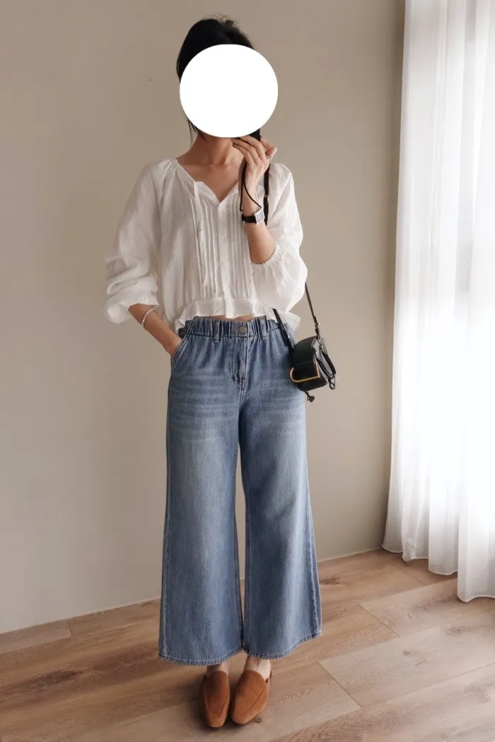 這件牛仔寬褲風格可甜可鹹非常百搭:)