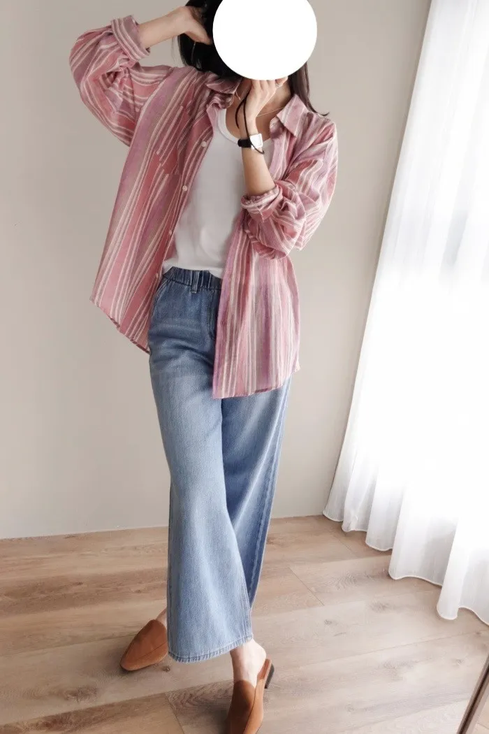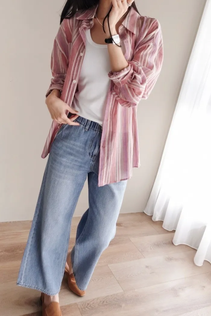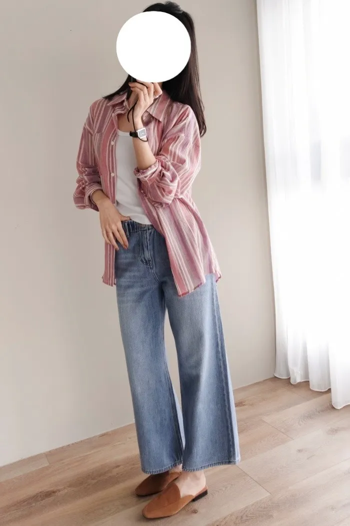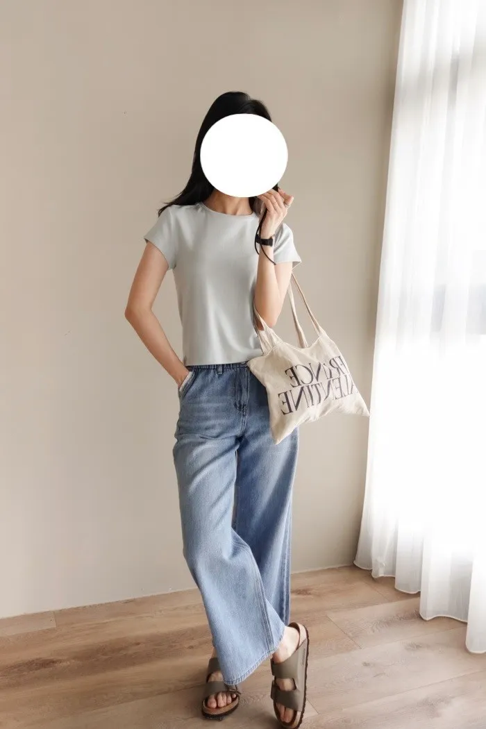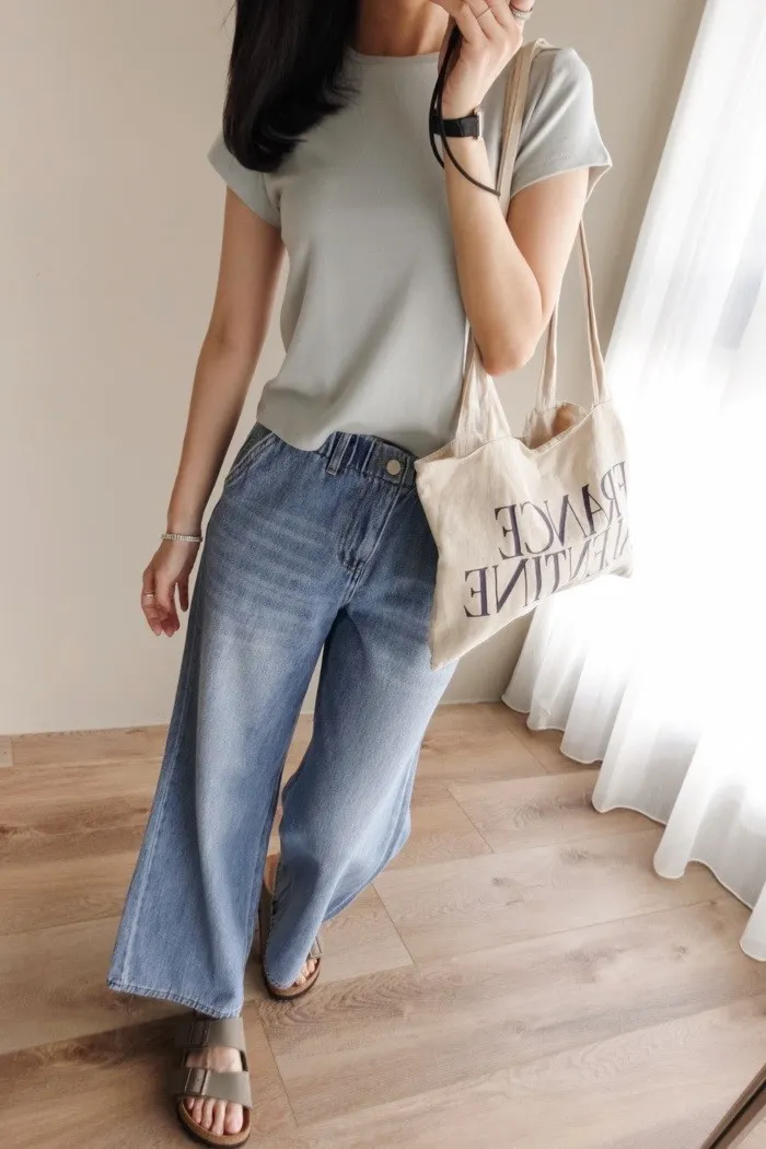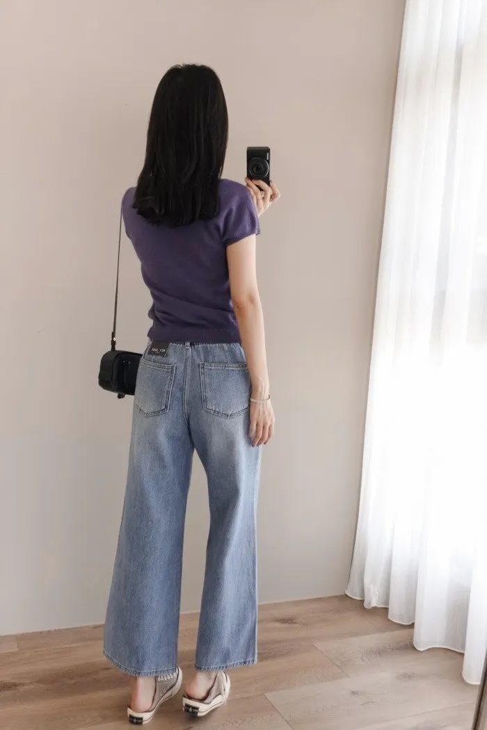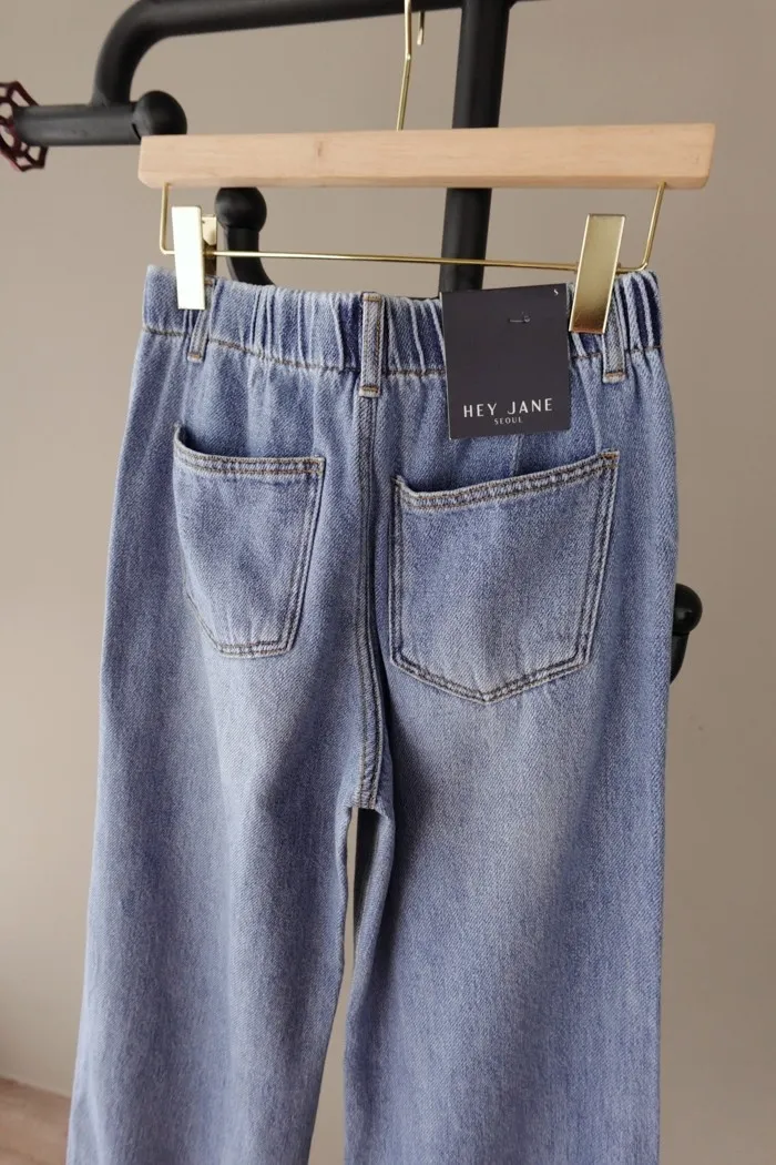 這件牛仔寬褲風格可甜可鹹非常百搭:)
