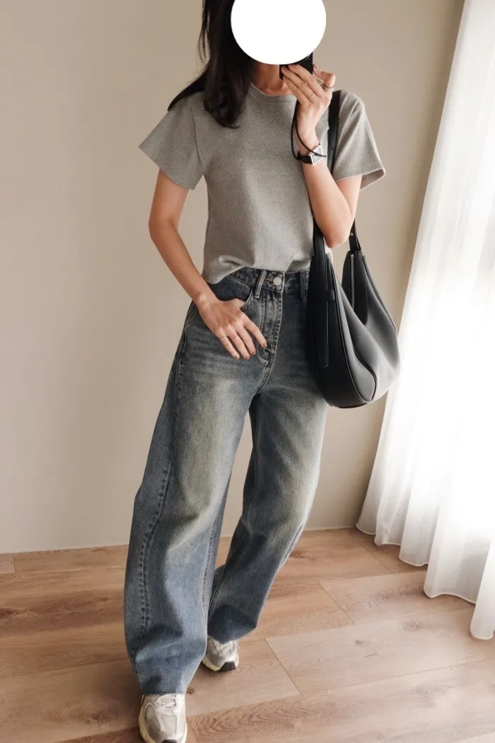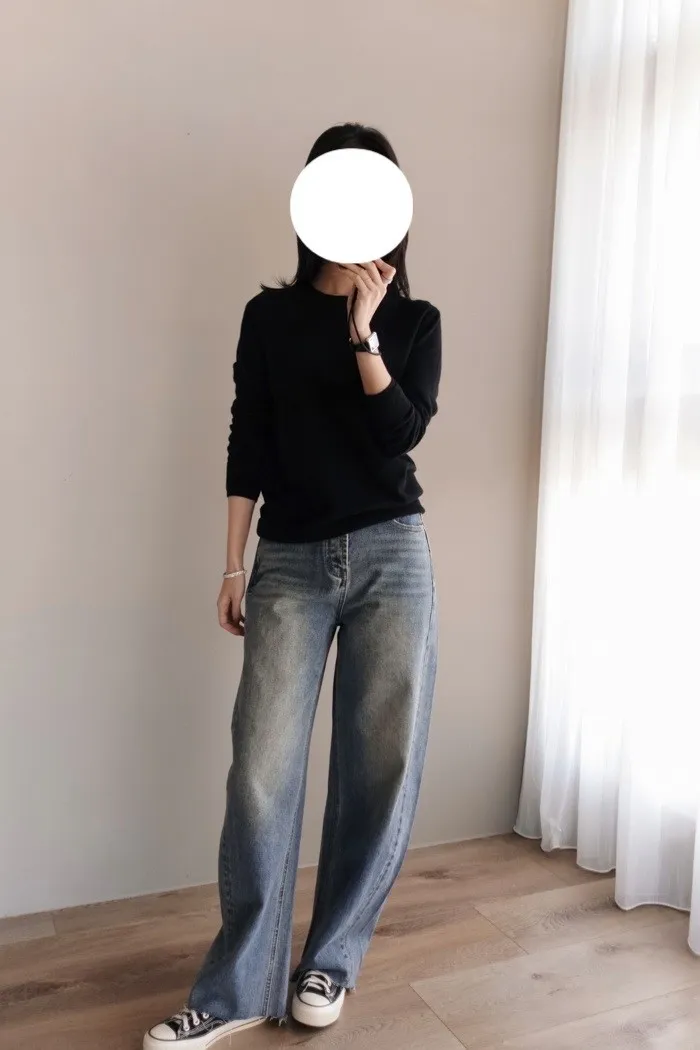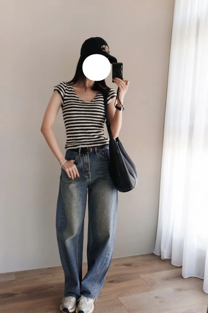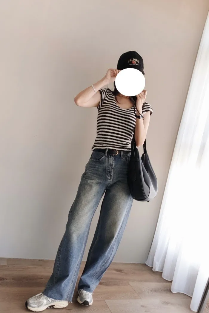 這件大丹寧的腰高剛剛好 甚至不繫腰帶也好看