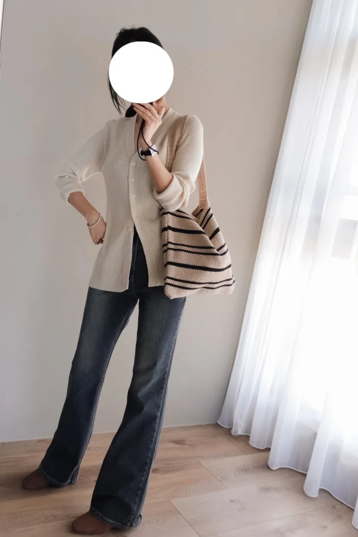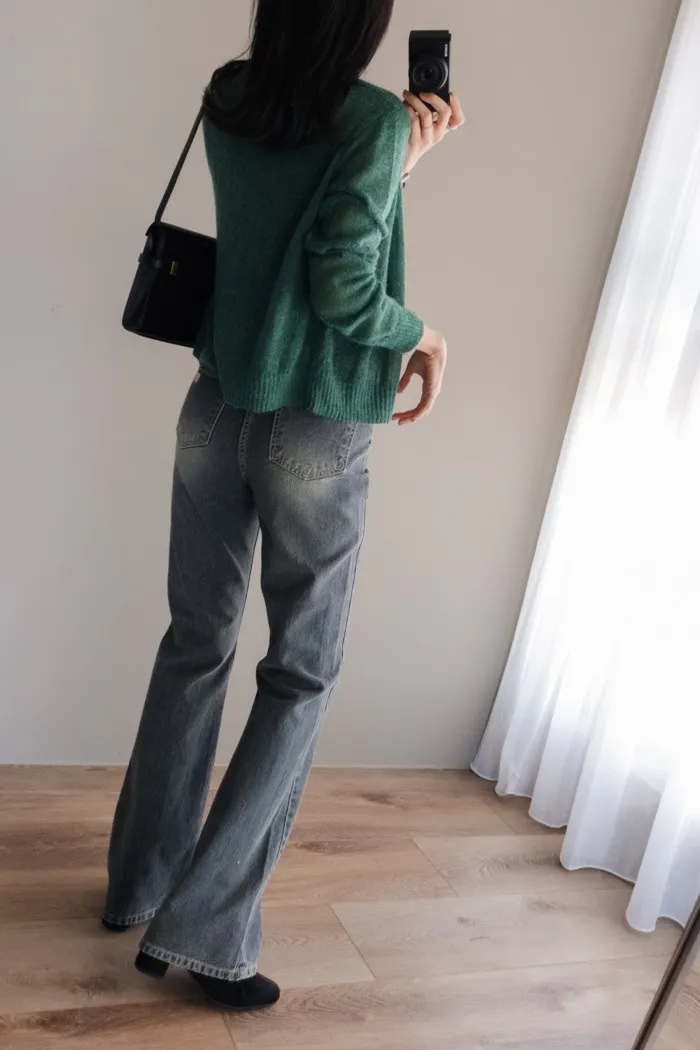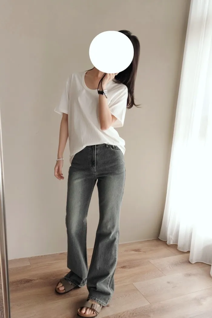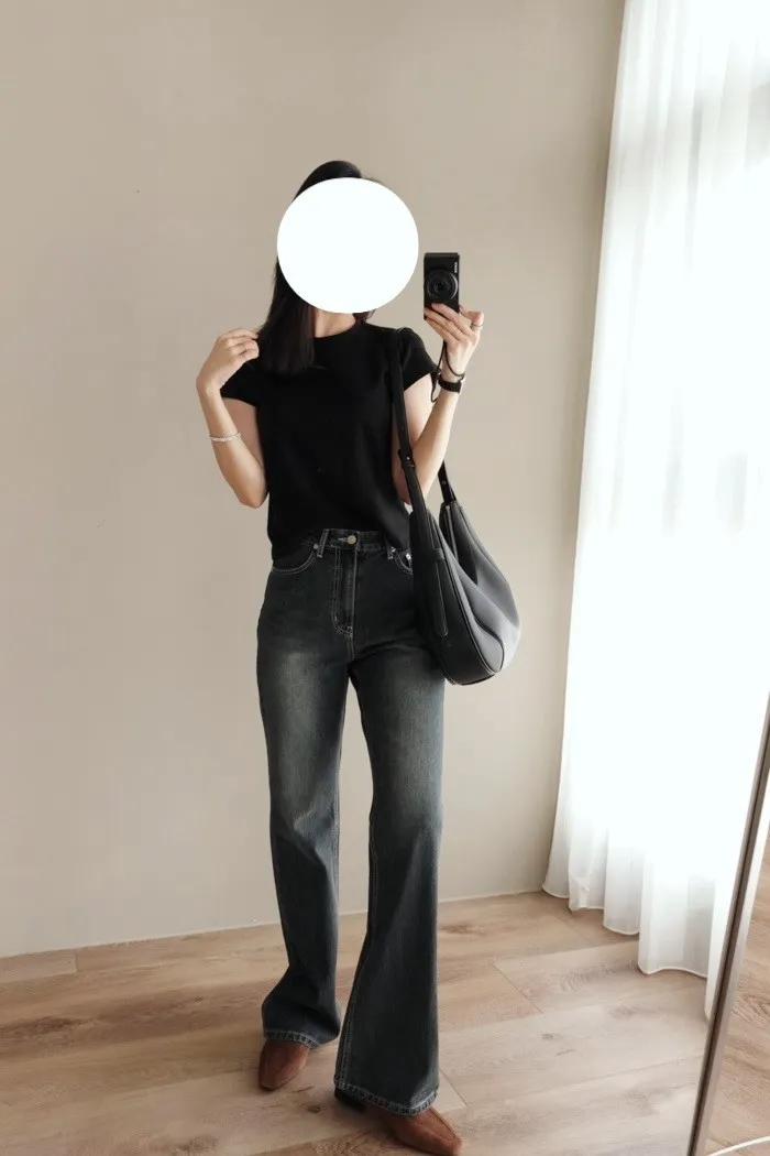 這件小喇叭丹寧褲版型很順不會有突然寬出來的喇叭效果