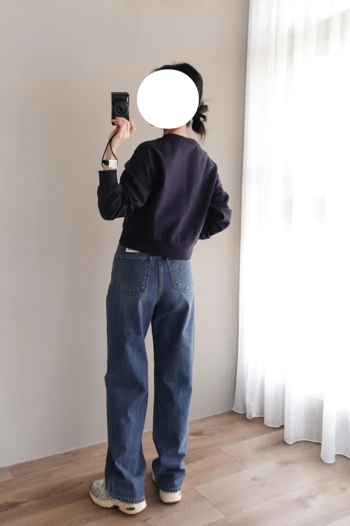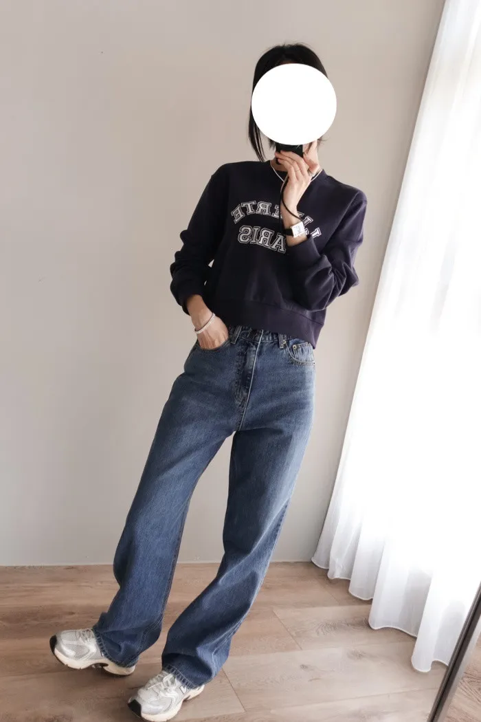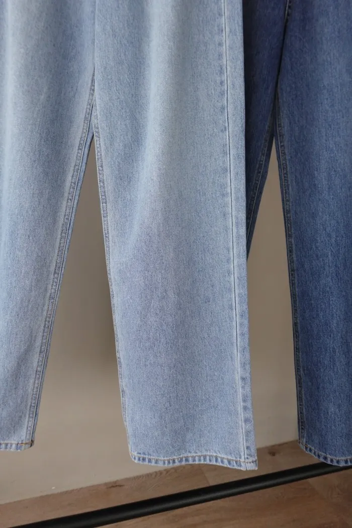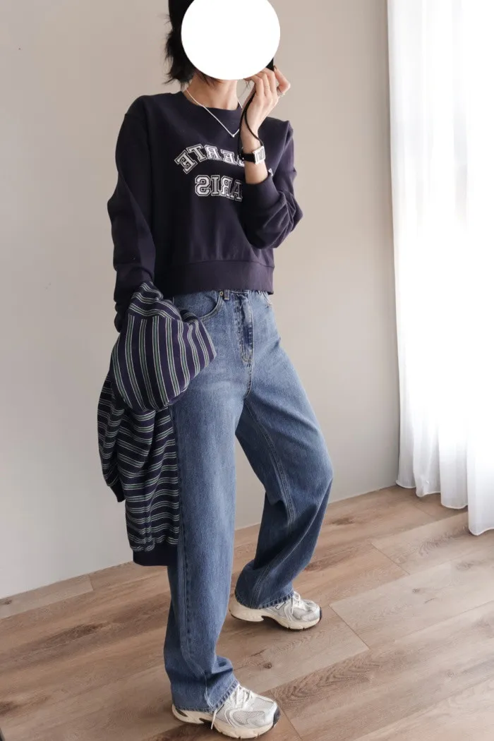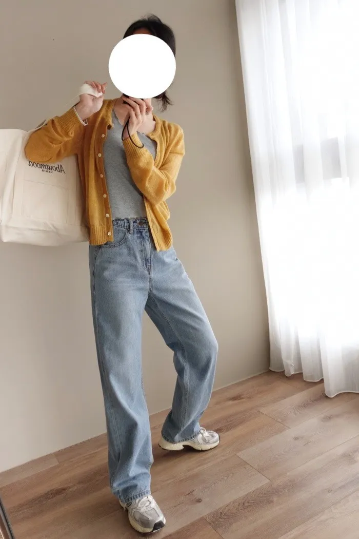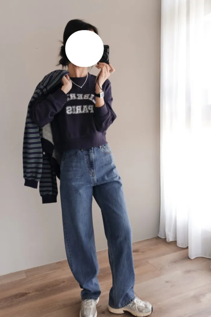這件是隨手拿來一穿就好看的小堆積牛仔寬褲