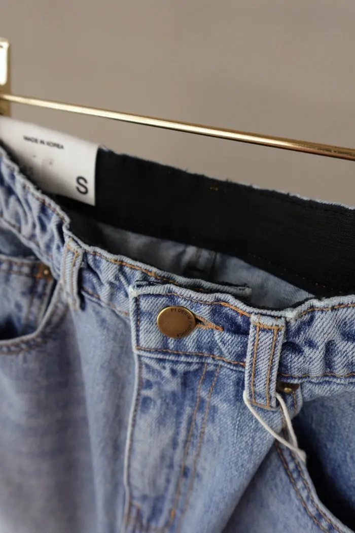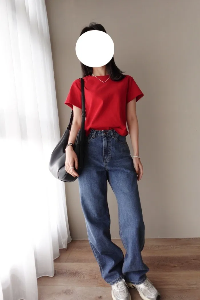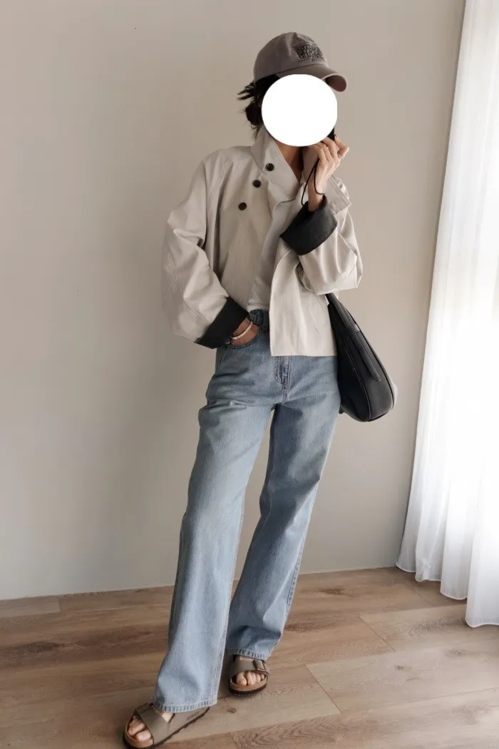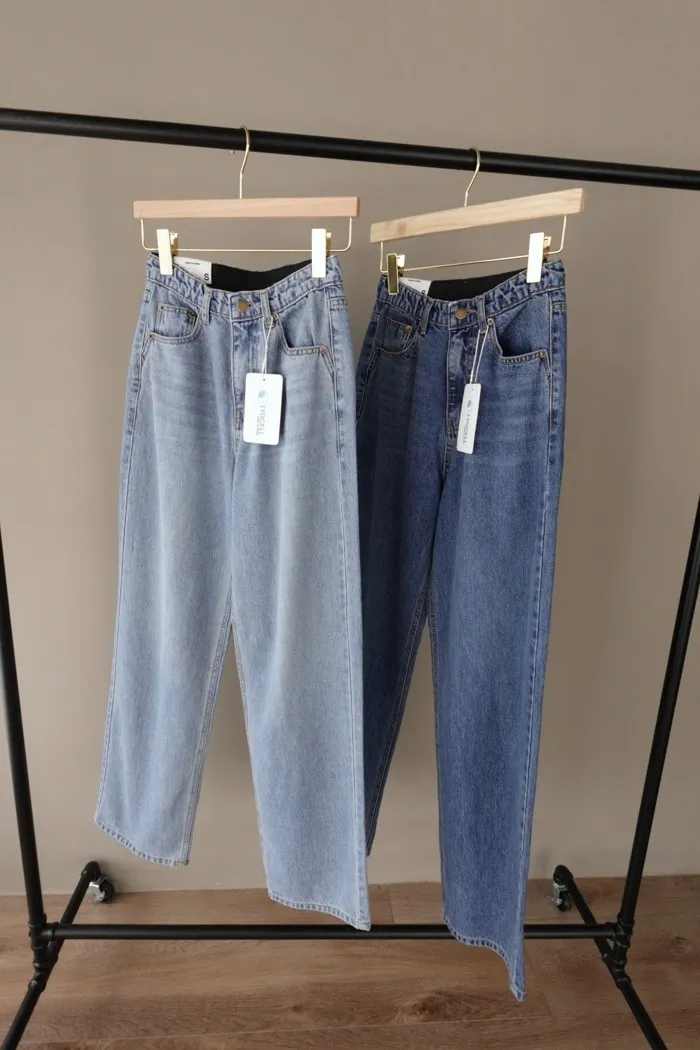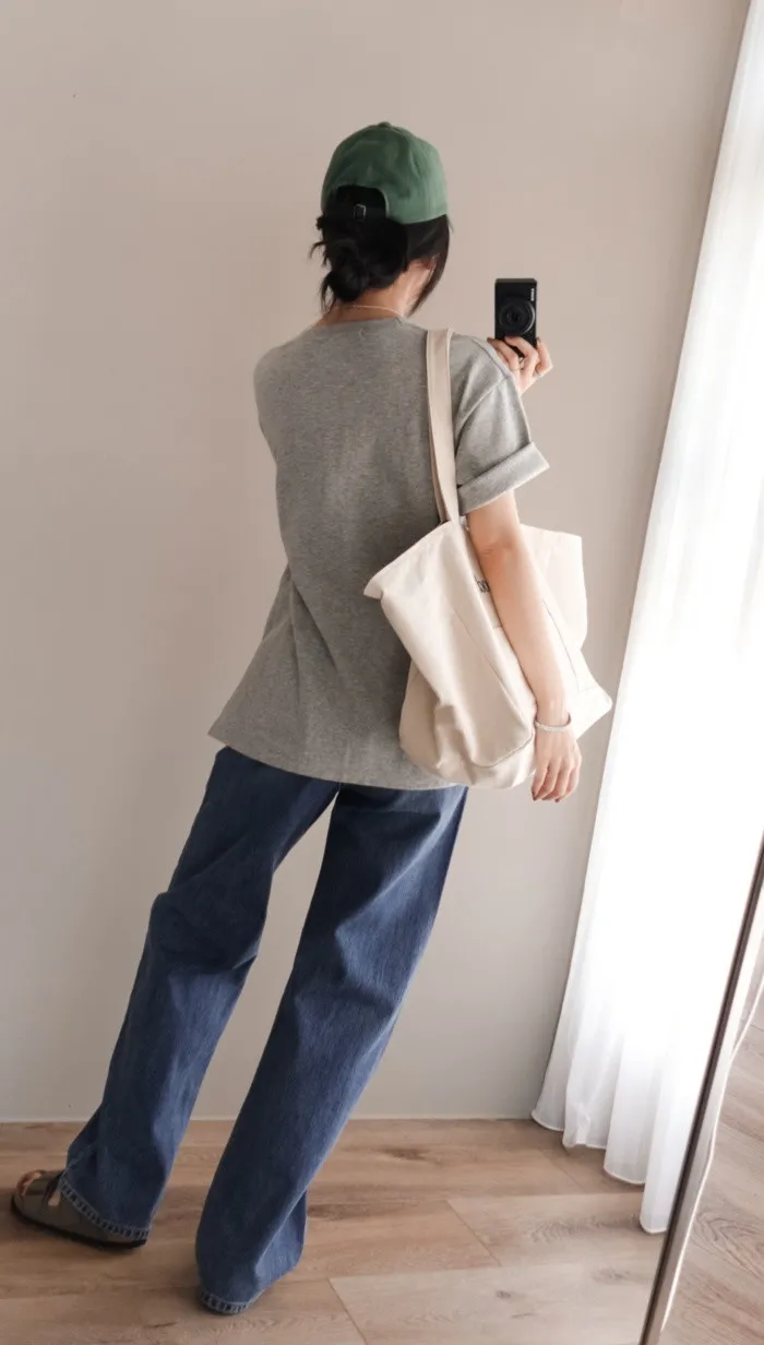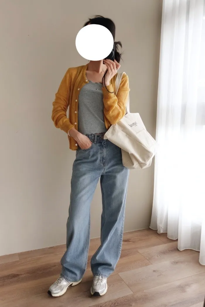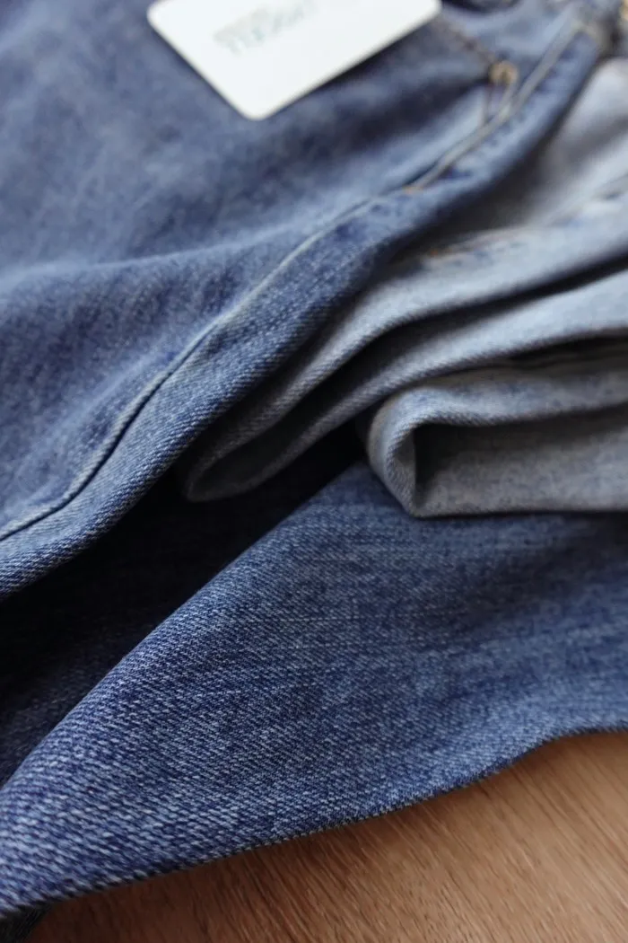這件是隨手拿來一穿就好看的小堆積牛仔寬褲