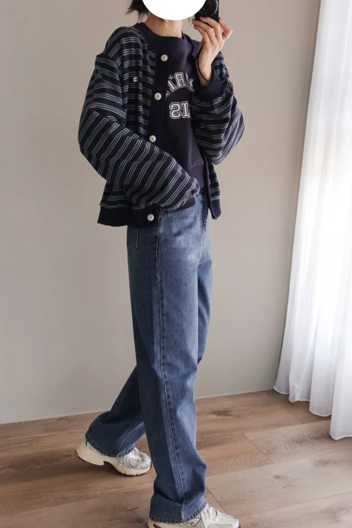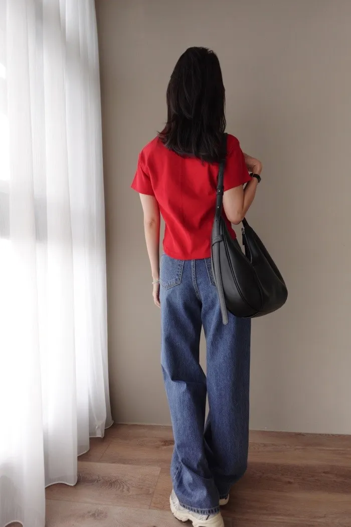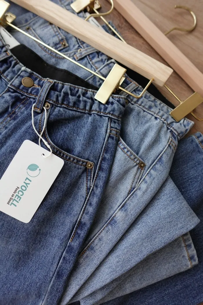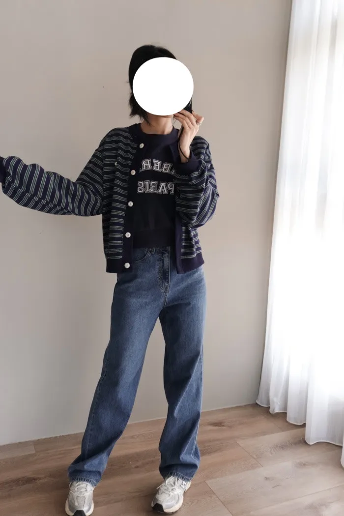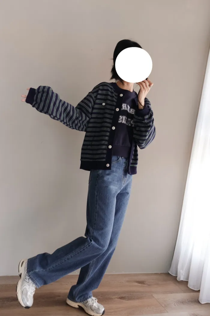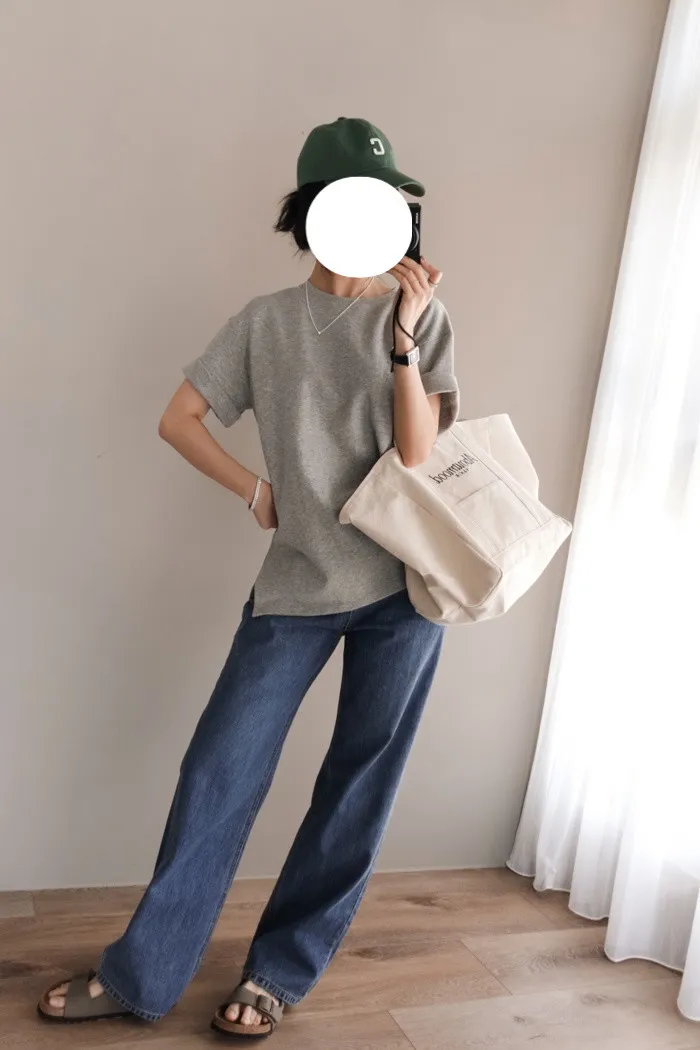 這件是隨手拿來一穿就好看的小堆積牛仔寬褲