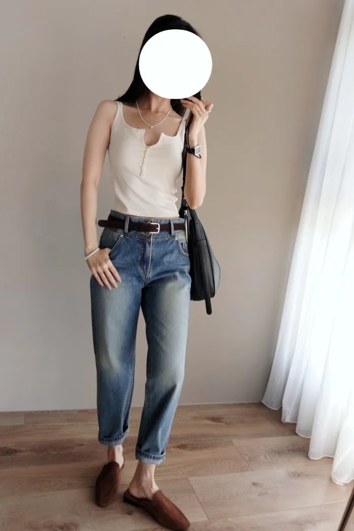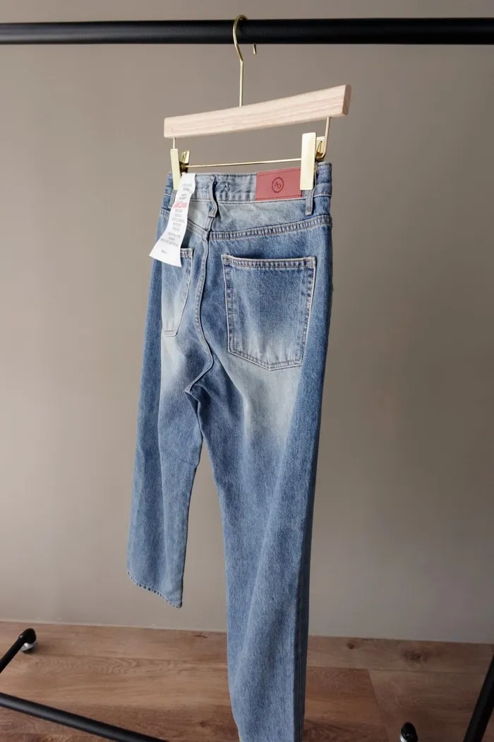 這款的管型屬於經典蘿蔔牛仔褲