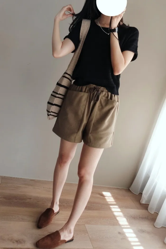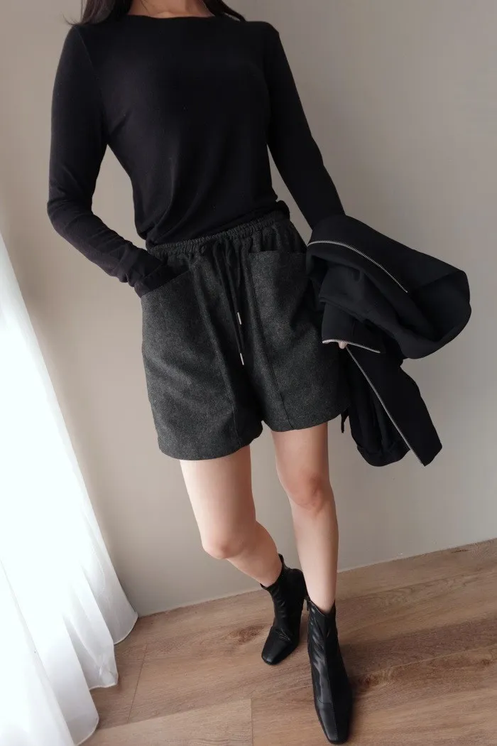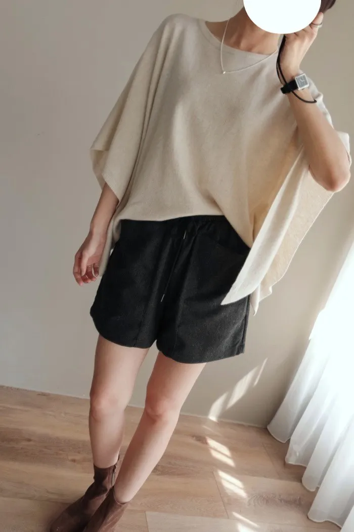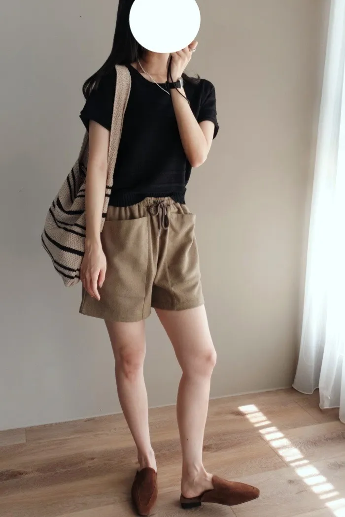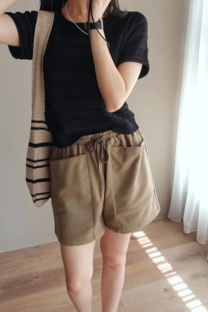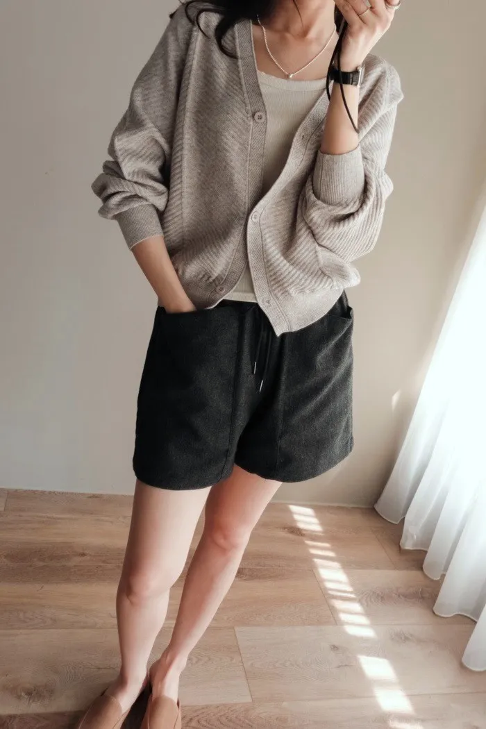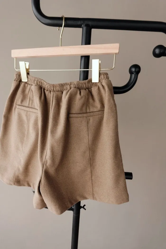 質料為"呢絨" 像是霧感重的親膚呢料短褲