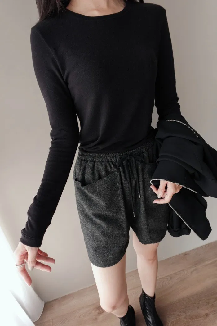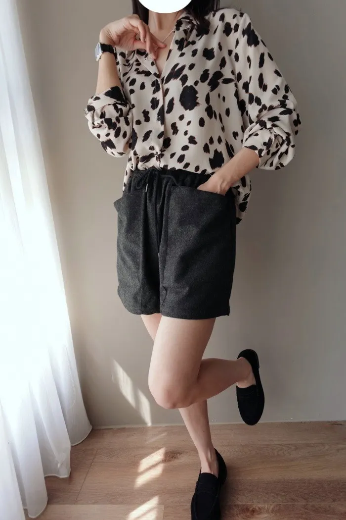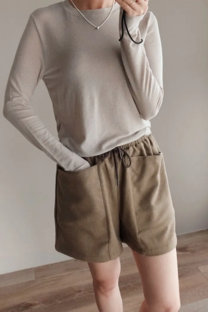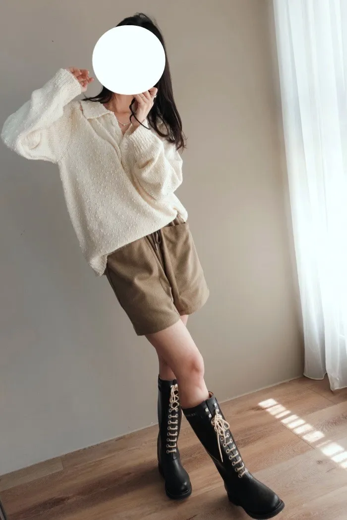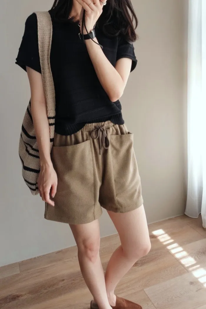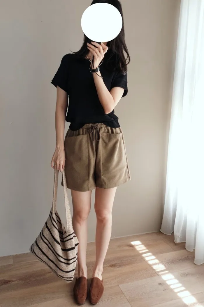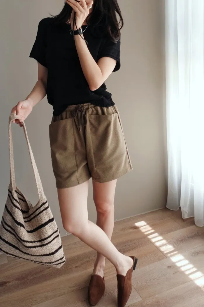 質料為"呢絨" 像是霧感重的親膚呢料短褲
