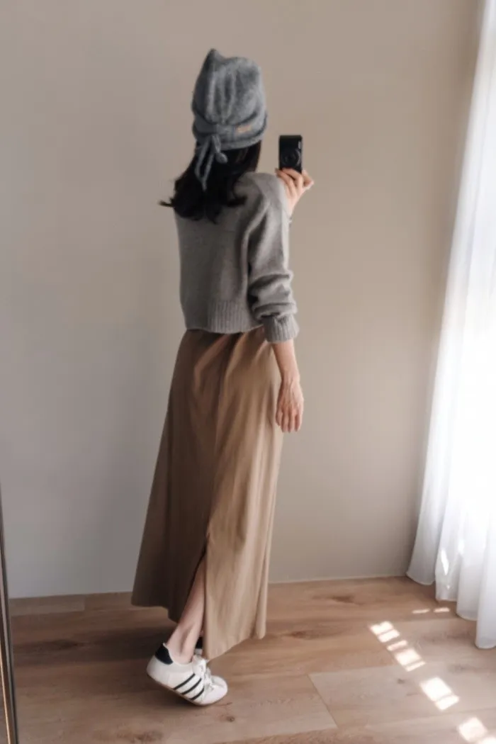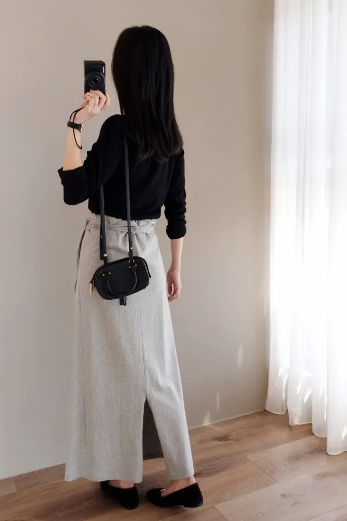 所以套進去裙子後只要將開叉放在後側