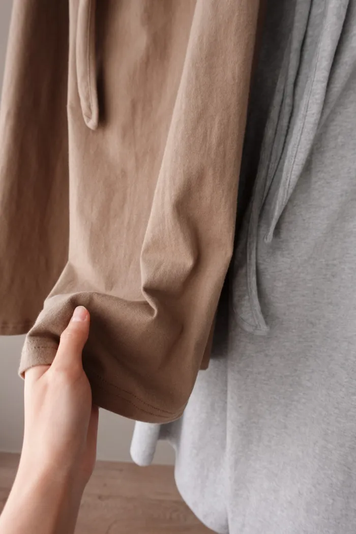 材質為水洗純棉 雖然兩色都不深但是完全不會透膚可以放心