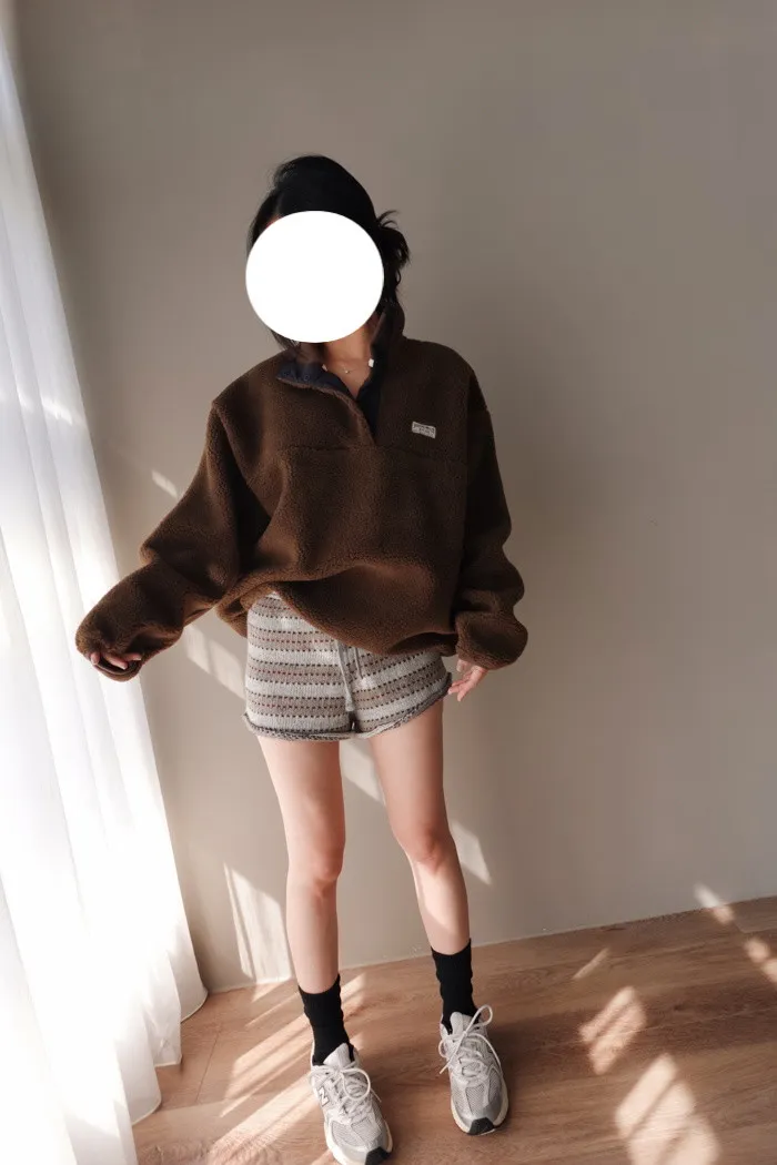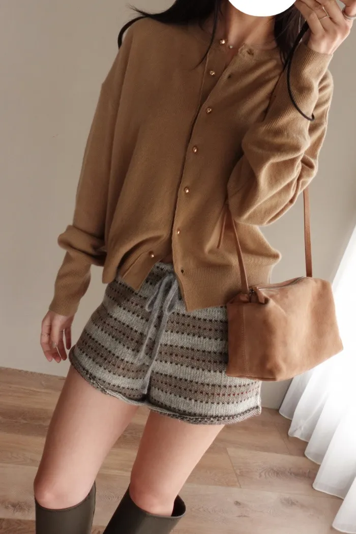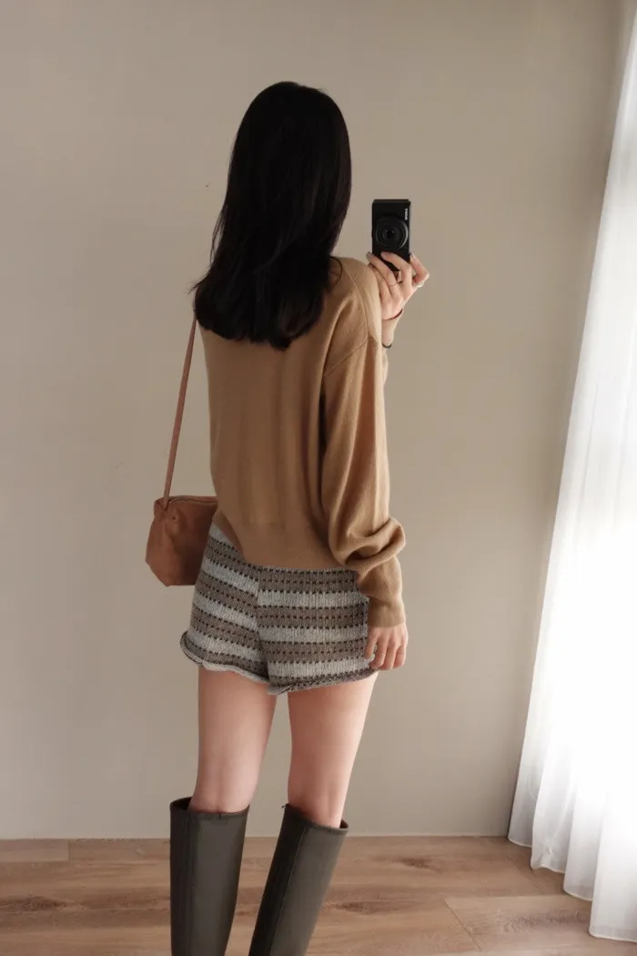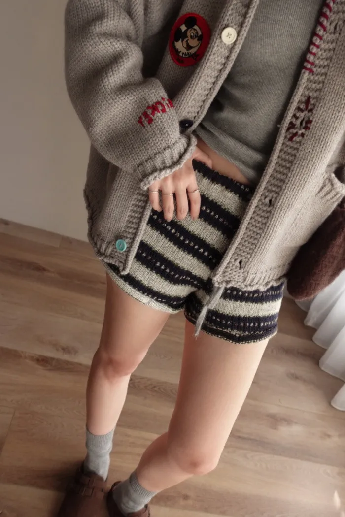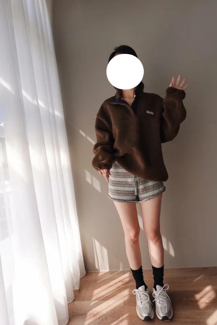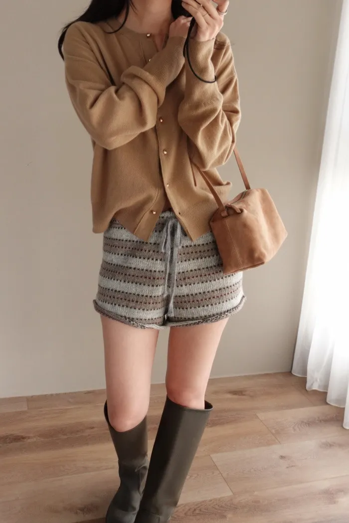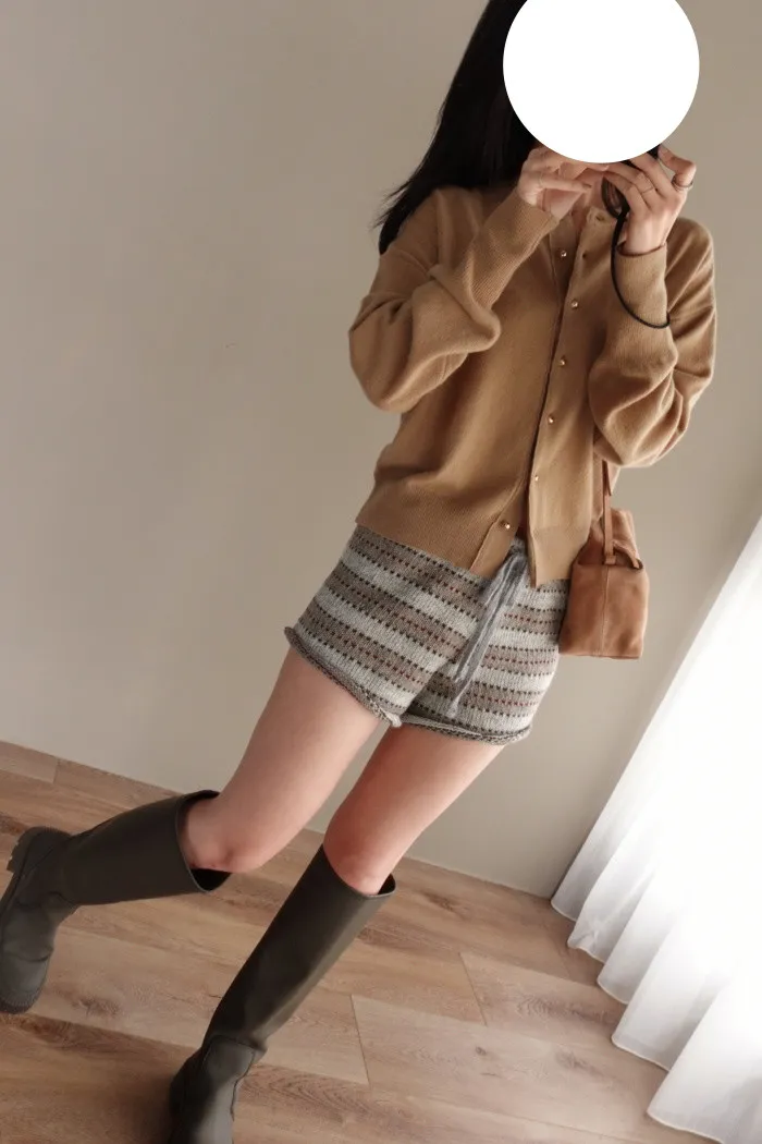 我覺得這件彩線織面羊毛短褲好適合搭上有厚度的上衣