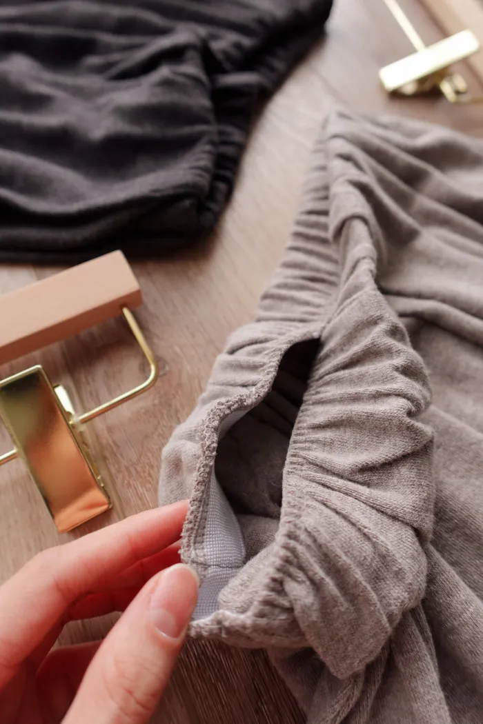 鬆緊摺痕順著輕柔質料帶出流動線條