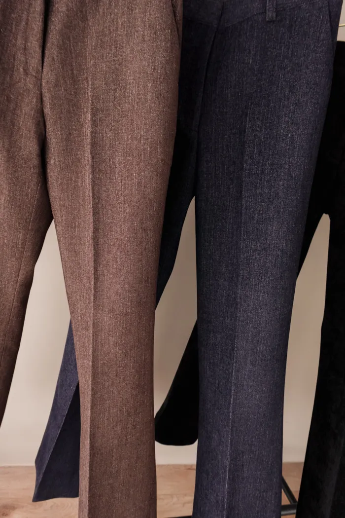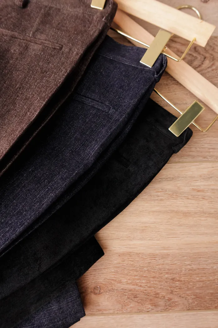 摸起來像是將高挺份量西褲混合了磨毛的手感