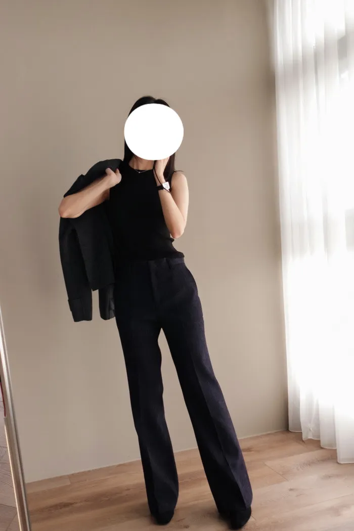 搭配跟鞋時將褲版整個拉長的線條感 超級無敵顯瘦!
