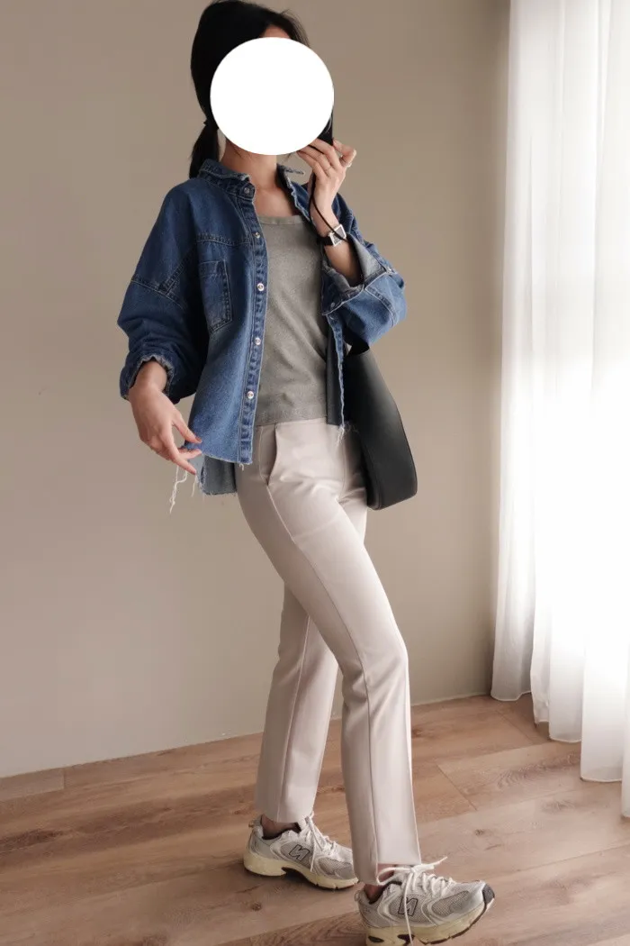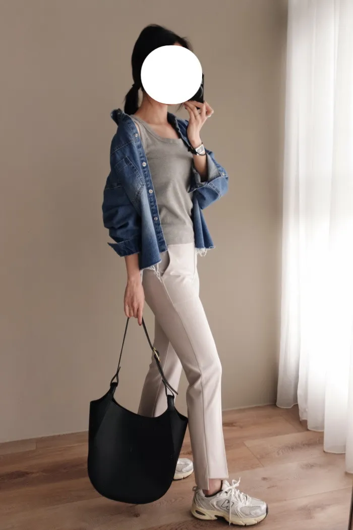 搭配上落在八九分的褲長