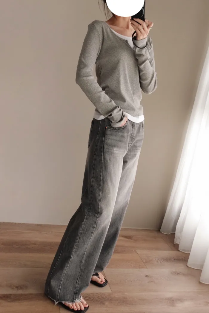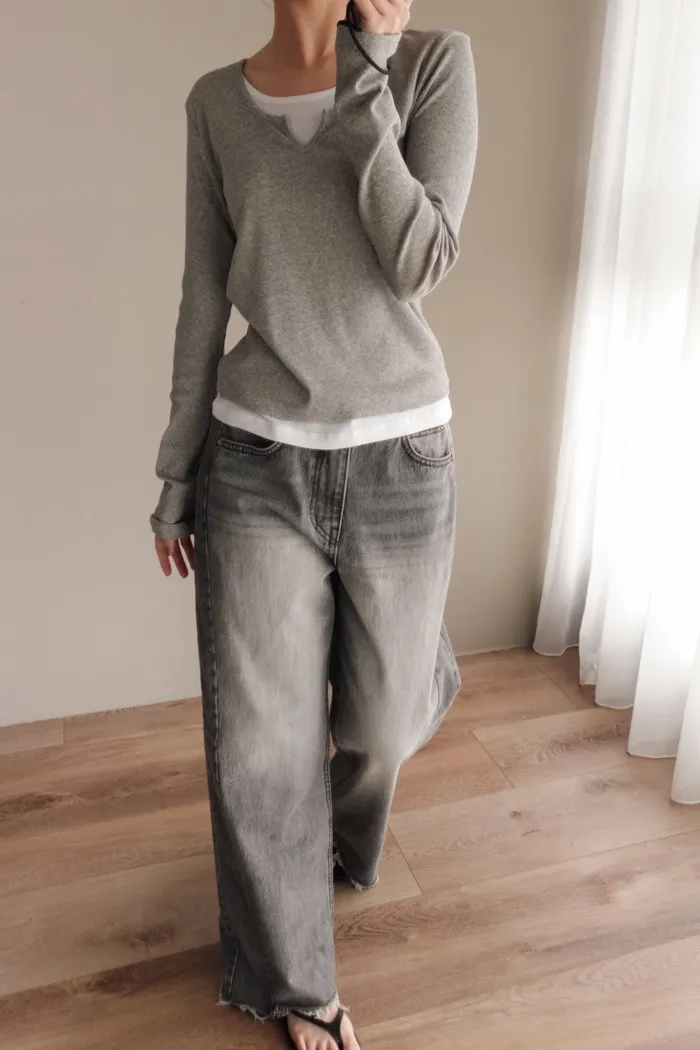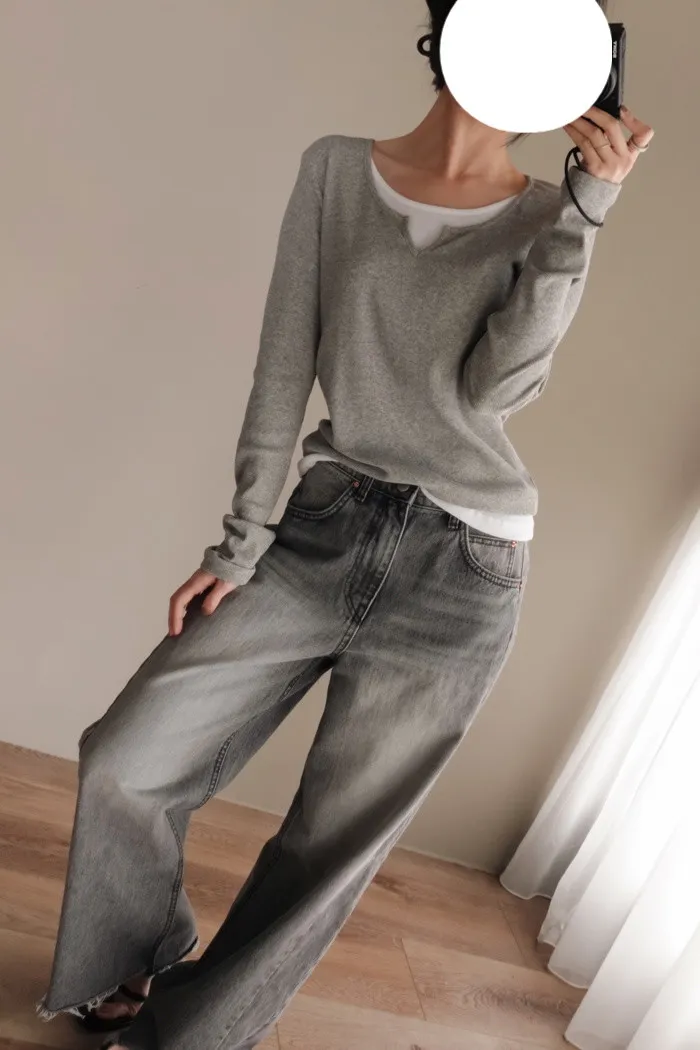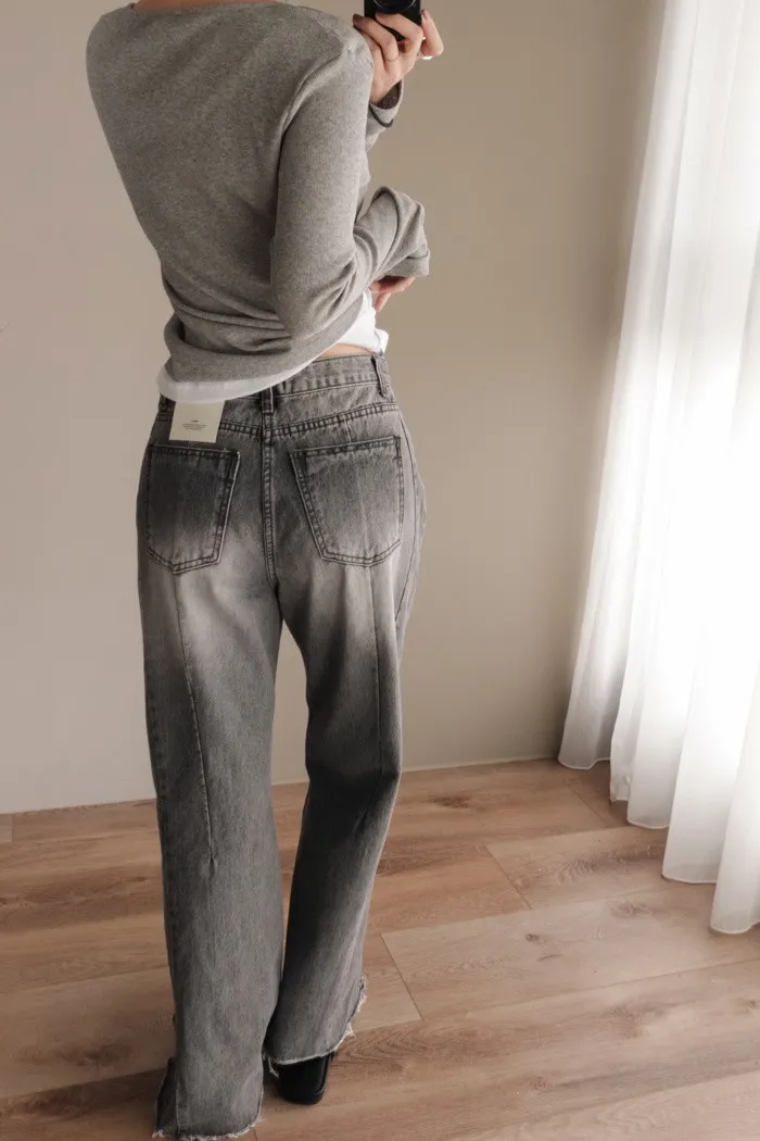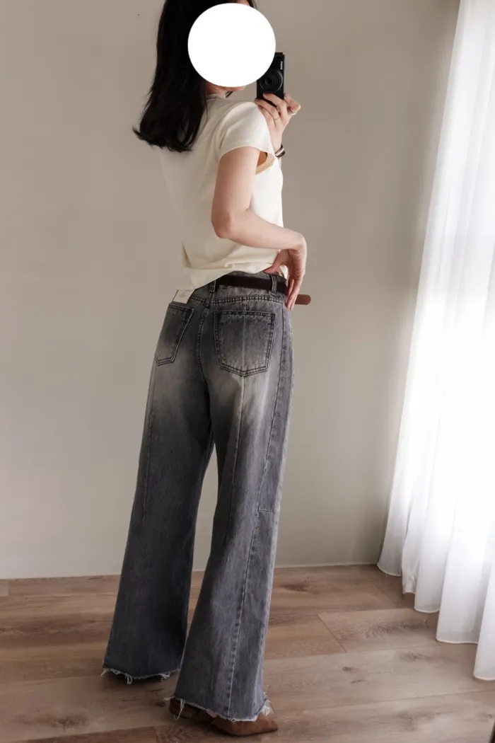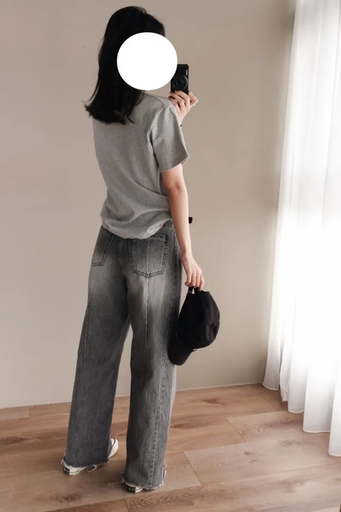 僅僅在褲口處以不修邊呈現 很襯托這件的大方隨性風格♥