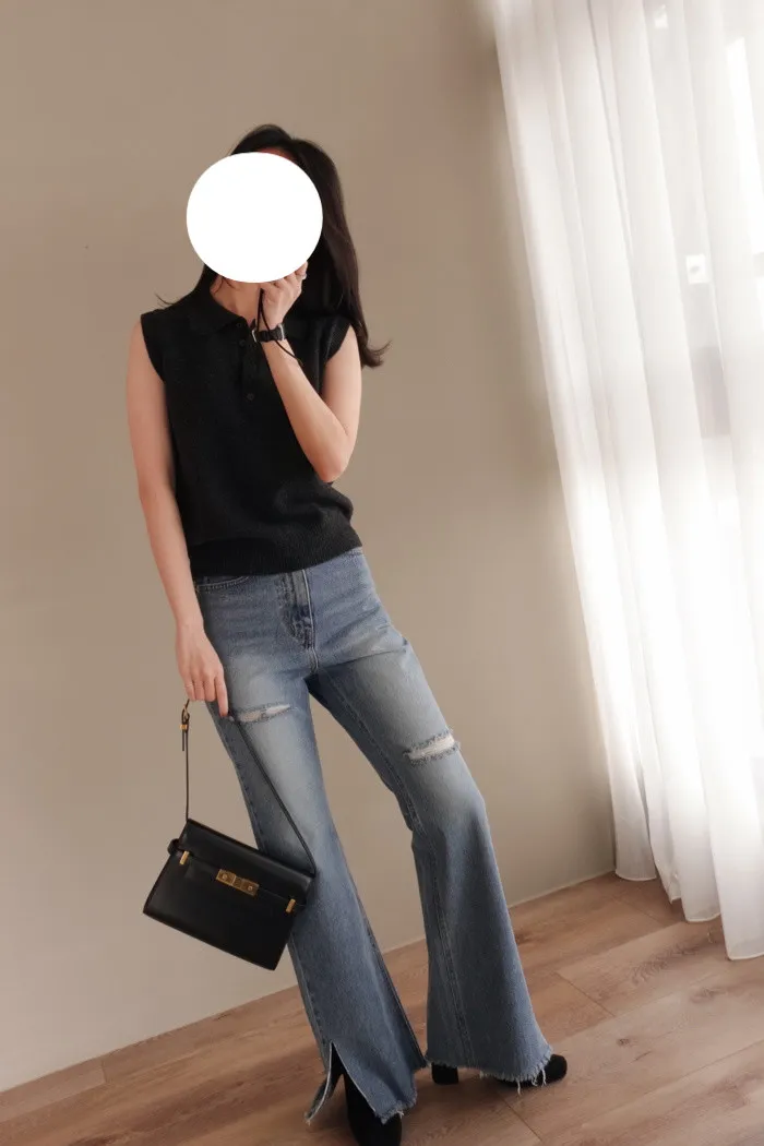這件小喇叭丹寧褲版型很順不會有突然寬出來的喇叭效果