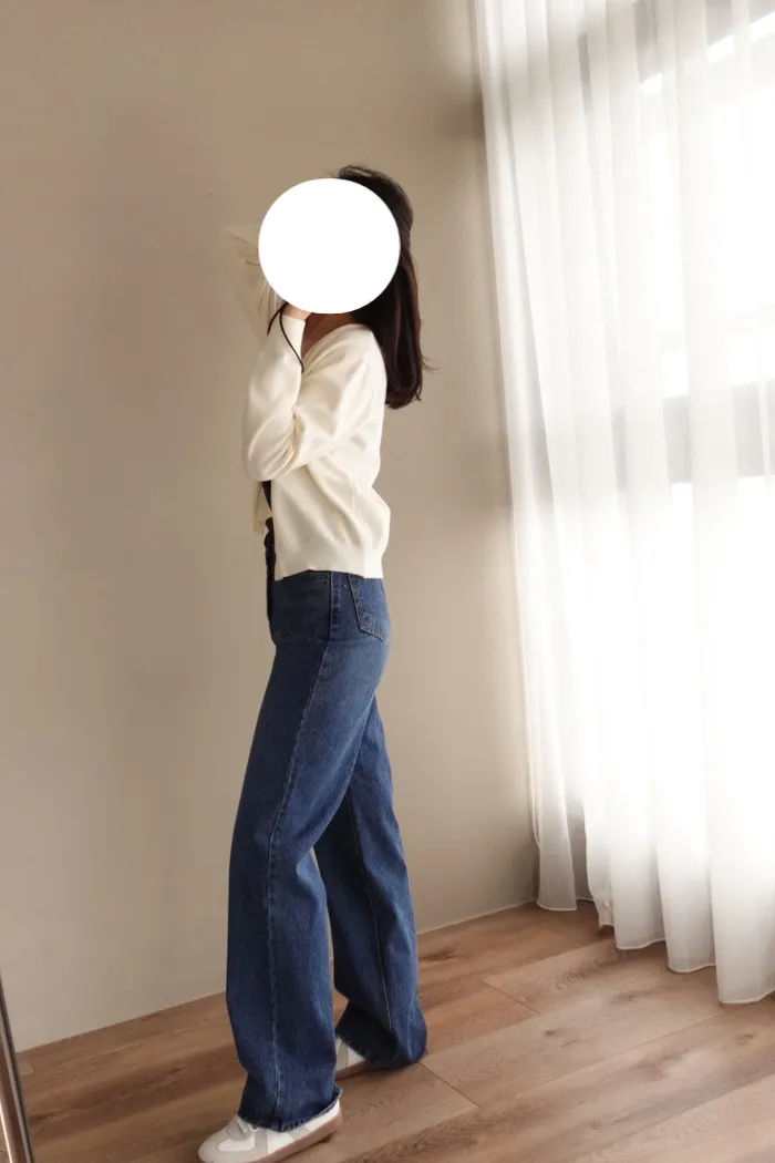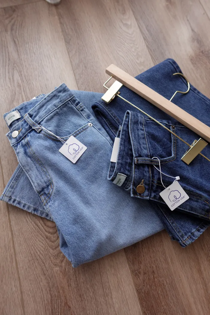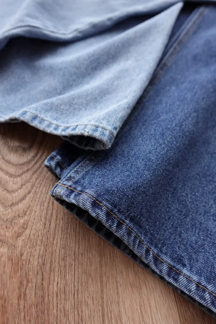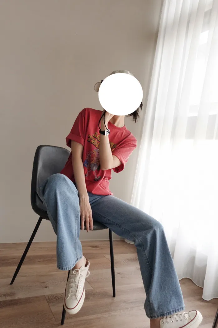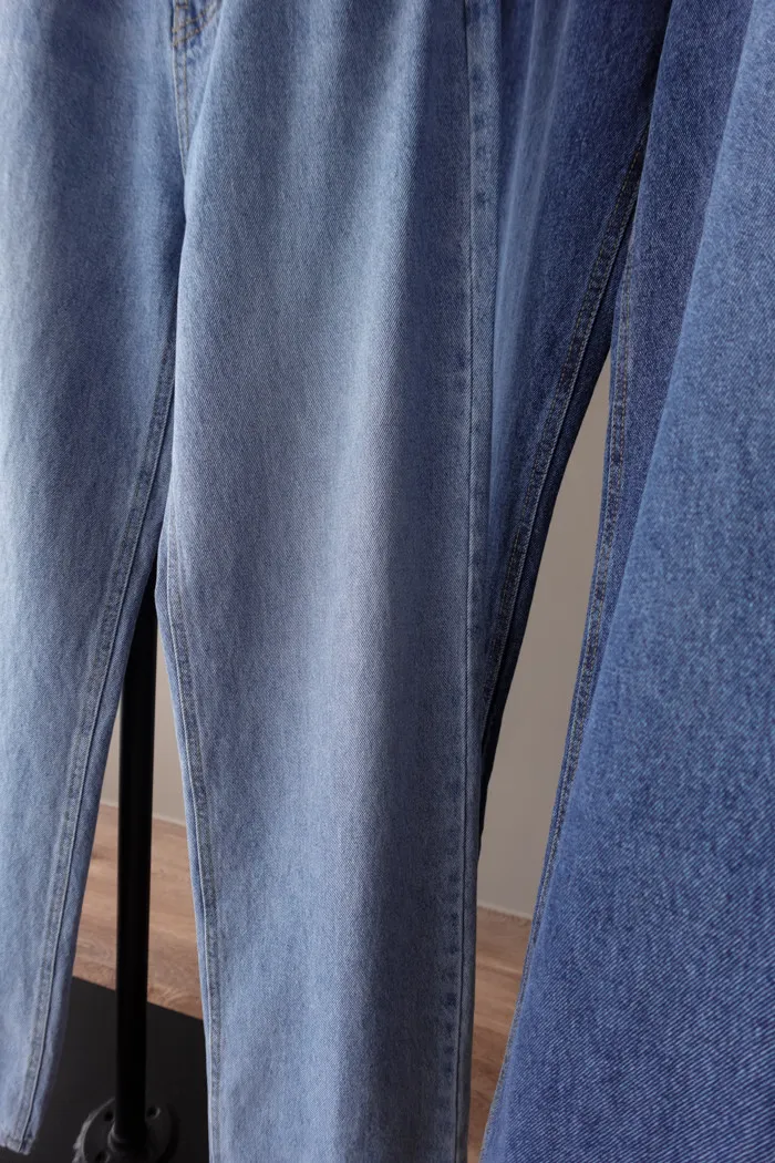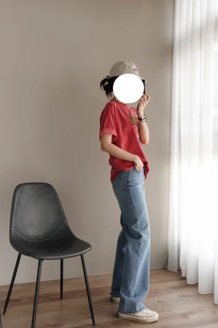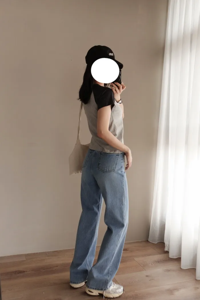 這件是隨手拿來一穿就好看的小堆積牛仔寬褲