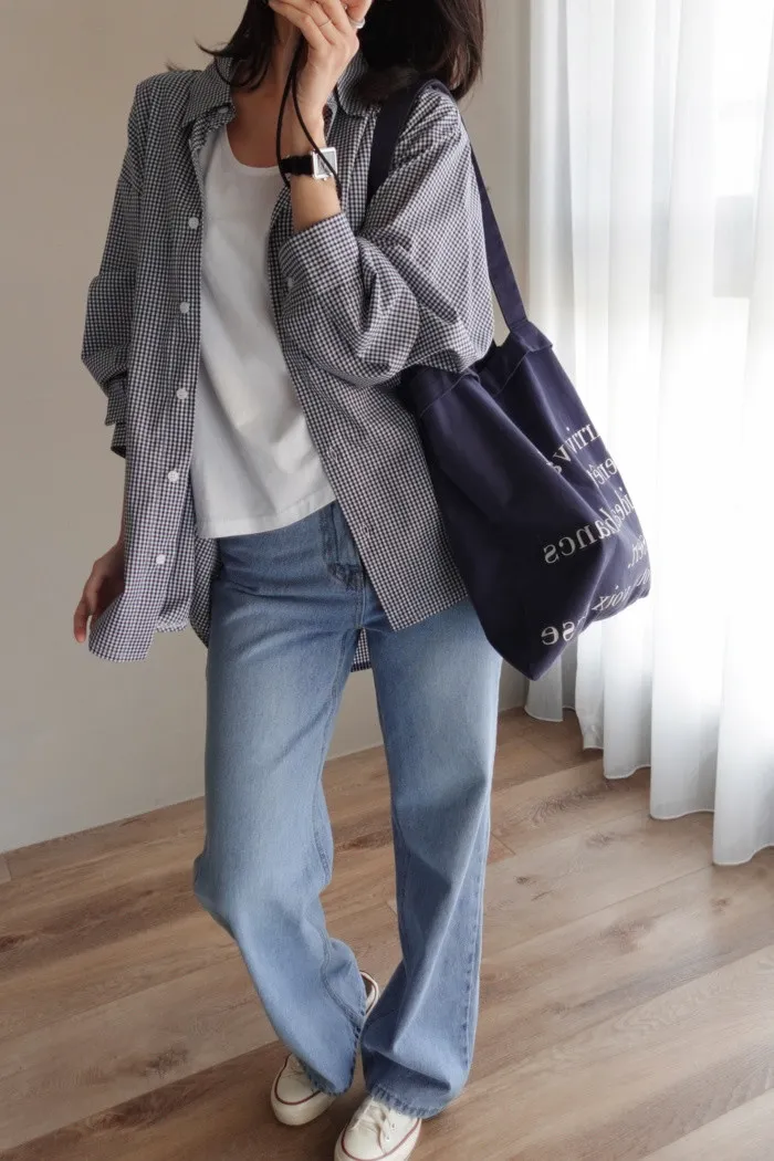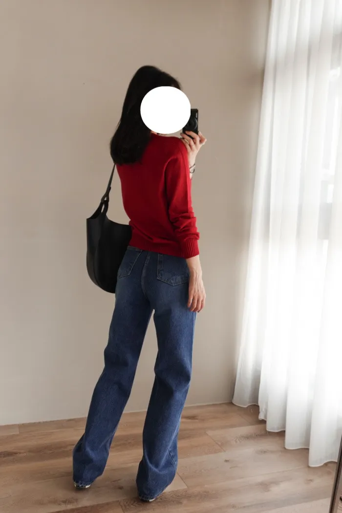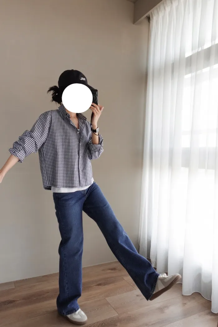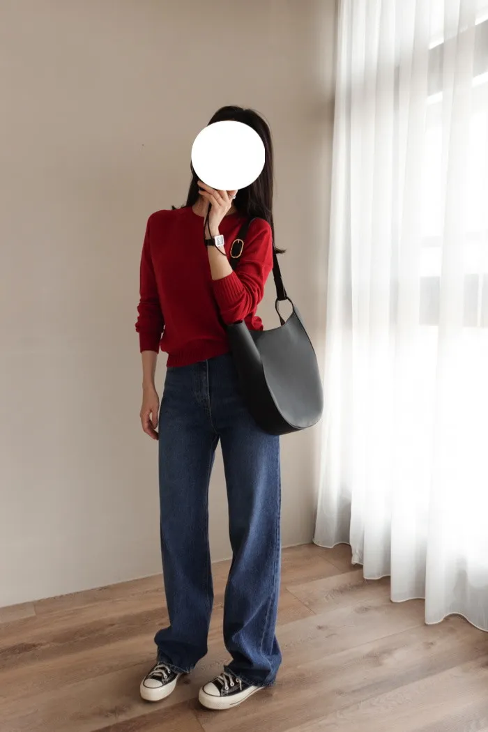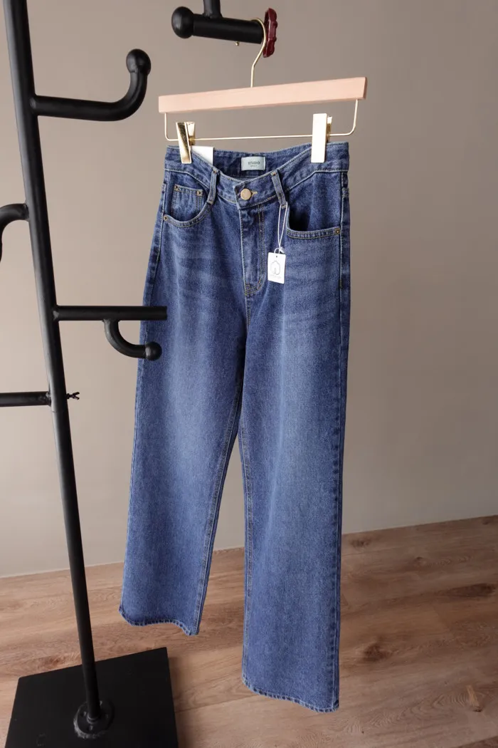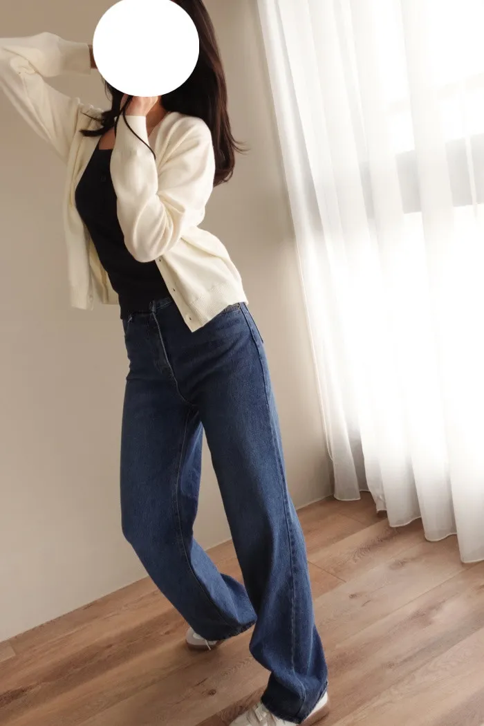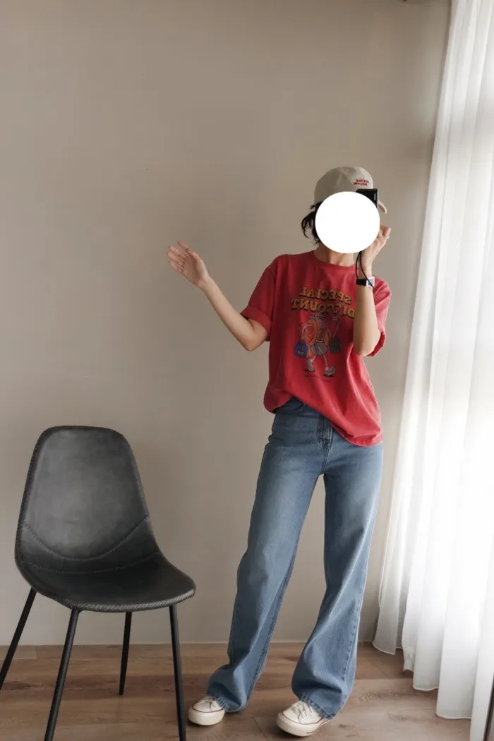 這件是隨手拿來一穿就好看的小堆積牛仔寬褲