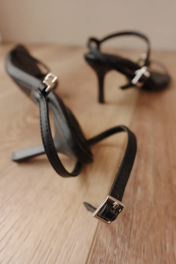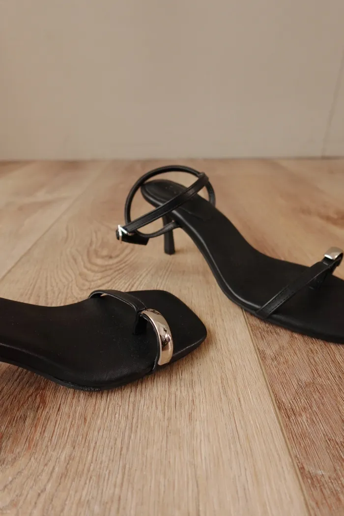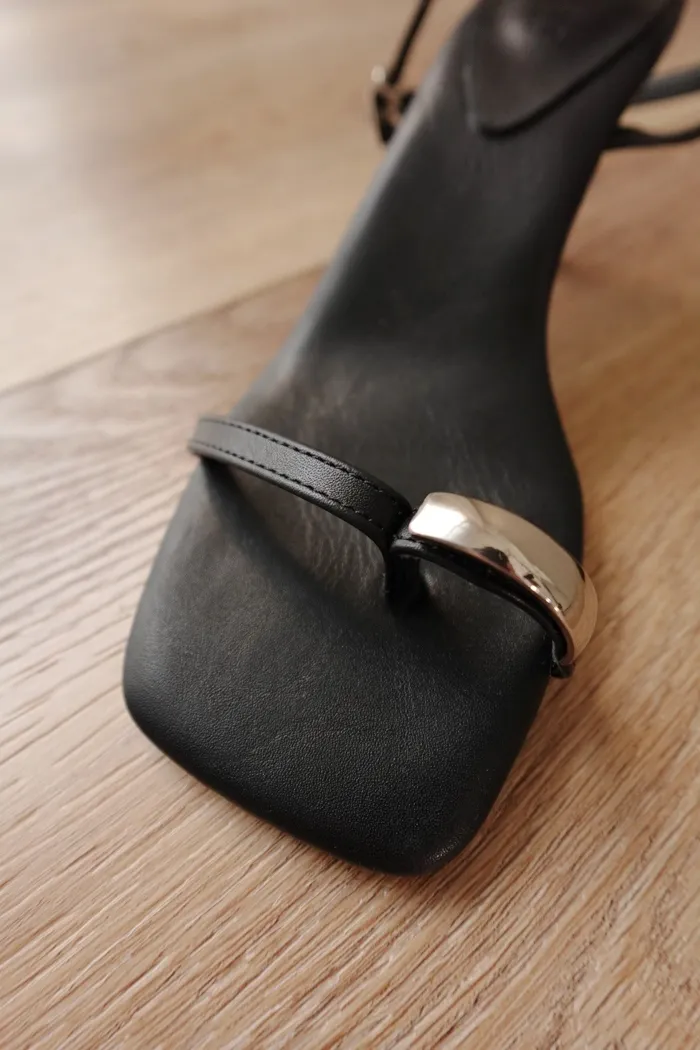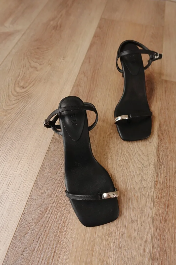 超美的黑細帶涼鞋 搭配上銀圈趾設計就像專櫃品一樣精緻