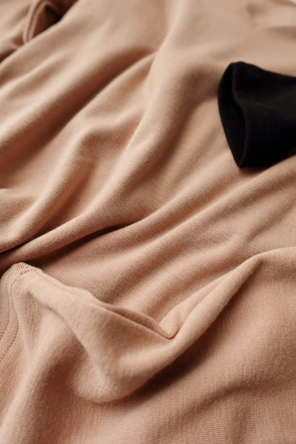 質料為彈性很舒服的棉質 貼身程度是輕觸身體的程度而已不會緊繃